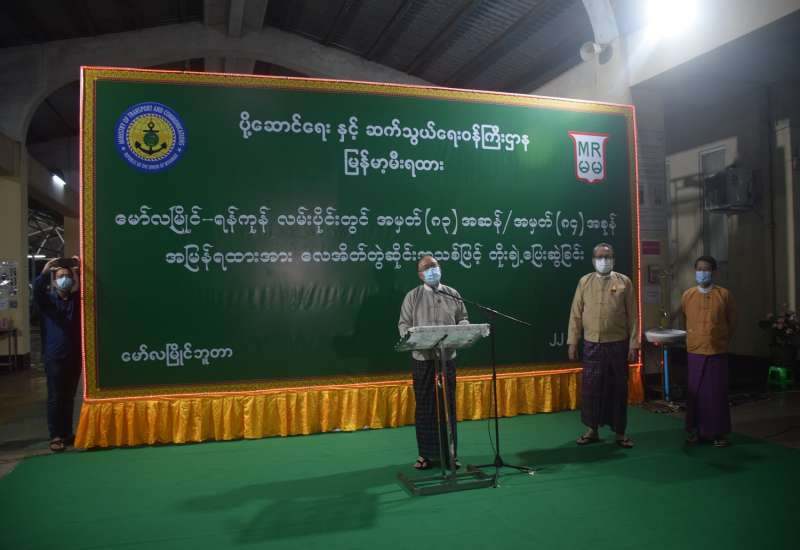 ပို့ဆောင်ရေးနှင့် ဆက်သွယ်ရေးဝန်ကြီးဌာန မြန်မာ့မီးရထားမှ ရန်ကုန်-မော်လမြိုင်လမ်းပိုင်း၌ လေအေးပေးစက်ပါလေအိတ်တွဲဆိုင်းအသစ်များဖြင့် အမှတ် (၈၃) အဆန် လူစီးအမြန်ရထားနှင့် အမှတ် (၈၄) အစုန် လူစီးအမြန်ရထား စတင်ပြေးဆွဲပေးခြင်းအခမ်းအနားကို ယမန်နေ့ ည ၉ နာရီတွင် မော်လမြိုင်ဘူတာ အမှတ် (၁) စင်္ကြန်၌ ကျင်းပသည်။