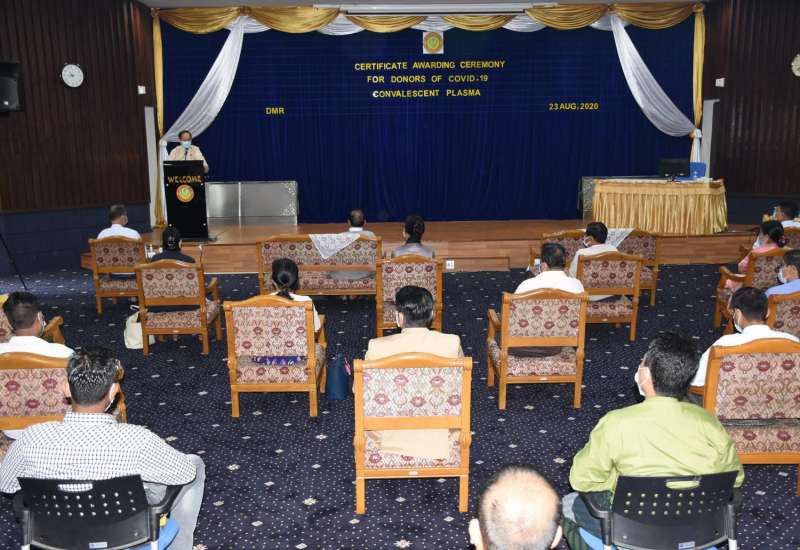ကိုဗစ်-၁၉ လူနာများအား ကုသရန်အတွက် သွေးရည်ကြည်များ လှူဒါန်းခဲ့သည့် ကိုဗစ်-၁၉ မှ ပြန်လည်သက်သာ ကောင်းမွန်သွားသူများအား ဂုဏ်ပြုပွဲကို ယနေ့နံနက်ပိုင်း က ရန်ကုန်မြို့၊ ဆေးသုတေသနဦးစီးဌာန၌ ကျင်းပသည်။