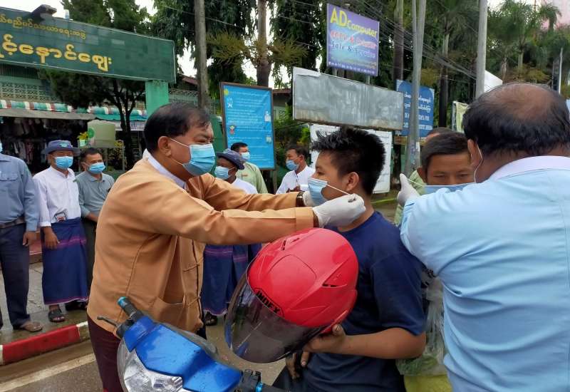 ကရင်ပြည်နယ်၊ မြဝတီမြို့တွင် ကိုဗစ် - ၁၉ ရောဂါ ဒုတိယလှိုင်းကြိုတင်ကာကွယ်ရေး၊ ပြည်သူများ ရောဂါပြန့်ပွားမှုမရှိစေရေးအတွက် နှာခေါင်းစည်းများ အခမဲ့ဖြန့်ဝေခြင်းကို ယမန်နေ့နံနက်ပိုင်းက မြဝတီမြို့ဘုရင့်နောင်ဈေးရှေ့၌ ဆောင်ရွက်ခဲ့သည်။
