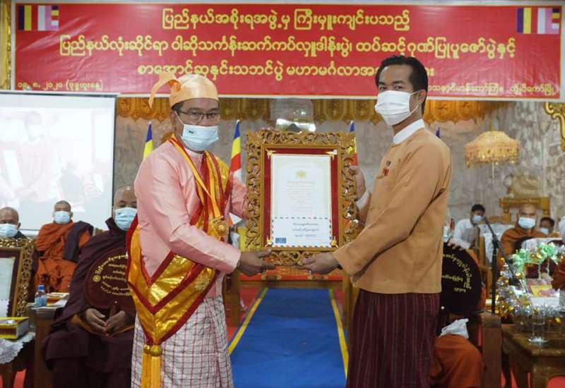 ကယားပြည်နယ် အစိုးရအဖွဲ့မှ ကြီမှူးကျင်းပ ပြုလုပ်သည့် ပြည်နယ်လုံးဆိုင်ရာ ဝါဆိုသင်္ကန်း ဆက်ကပ် လှူဒါန်းခြင်း၊ သာသနာတော်ဆိုင်ရာ ဘွဲ့တံဆိပ်တော်ရ ဆရာတော်များအား ထပ်ဆင့်ဂုဏ်ပြု ပူဇော်ခြင်း နှင့် ၂၀၁၉ ခုနှစ်၊ အစိုးရ ဓမ္မာစရိယနှင့် ပါဠိပထမပြန် စာမေးပွဲတွင် ဖြေဆို အောင်မြင်တော်မူခဲ့ကြသည့် စာအောင်သံဃာတော်များထံ စာအောင်ဆု အလှူတော်များ ဆက်ကပ်လှူဒါန်းခြင်း မဟာမင်္ဂလာ အခမ်းအနားအား ယမန်နေ့ မွန်းလွဲပိုင်းက လွိုင်ကော်မြို့၊ သာသနာ့ဗိမာန်တော်ကြီး၌ ကျင်းပပြုလုပ်ခဲ့သည်။