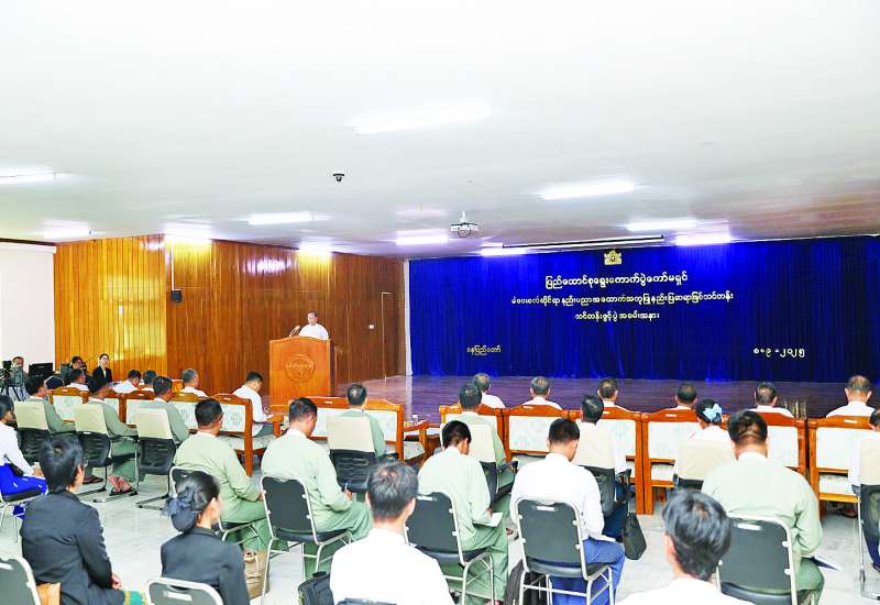 ၂၀၂၅-၂၀၂၆ ဘဏ္ဍာနှစ်အတွက် ပြည်ထောင်စုနယ်မြေ နေပြည်တော်အတွင်းရှိ အသက် ၈၅ နှစ်နှင့် အထက် သက်ကြီးပုဂ္ဂိုလ်များအား လူမှုရေးပင်စင်ထောက်ပံ့ခြင်း၊ စေတနာ့ဝန် ထမ်းအဖွဲ့အစည်းများနှင့် တိုက်ပွဲရှောင်ပြည်သူများအတွက် ထောက်ပံ့ကြေး ပေးအပ်ခြင်းအခမ်းအနားကို ယနေ့မွန်းလွဲပိုင်းတွင် ပျဉ်းမနားမြို့ မင်္ဂလာဗျူဟာခန်းမ၌ကျင်းပရာ လူမှုဝန်ထမ်း၊ ကယ်ဆယ်ရေးနှင့်ပြန်လည်နေရာချထား ရေးဝန်ကြီးဌာန ပြည်ထောင်စုဝန်ကြီး ဒေါက်တာ စိုးဝင်း၊ ဒုတိယဝန်ကြီးဒေါက်တာသန်းစိုး၊ နေပြည်တော်ကောင်စီဝင်များ၊ ဌာနဆိုင်ရာတာဝန်ရှိသူများနှင့် စေတနာ့ဝန်ထမ်းအဖွဲ့အစည်းများမှ ကိုယ်စားလှယ်များ တက်ရောက်ကြသည်။
