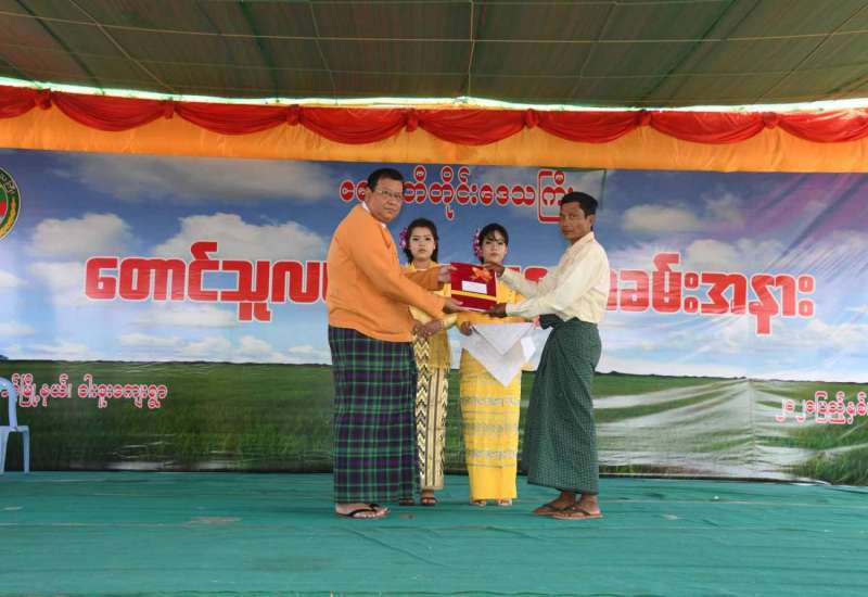 ရှေးဦးစွာ ပြည်ထောင်စုသမ္မတ မြန်မာနိုင်ငံတော် နိုင်ငံတော်သမ္မတ ဦးဝင်းမြင့် ထံမှ တောင်သူလယ်သမားနေ့ အခမ်းအနားသို့  ပေးပို့သော သဝဏ်လွှာအား ဧရာဝတီတိုင်း ဒေသကြီးအစိုးရအဖွဲ့ စိုက်ပျိုးရေး၊ မွေးမြူရေး၊ သယံဇာတနှင့် ပတ်ဝန်းကျင် ထိန်းသိမ်းရေး ဝန်ကြီး ဦးတင်အောင်ဝင်းက ဖတ်ကြားသည်.။