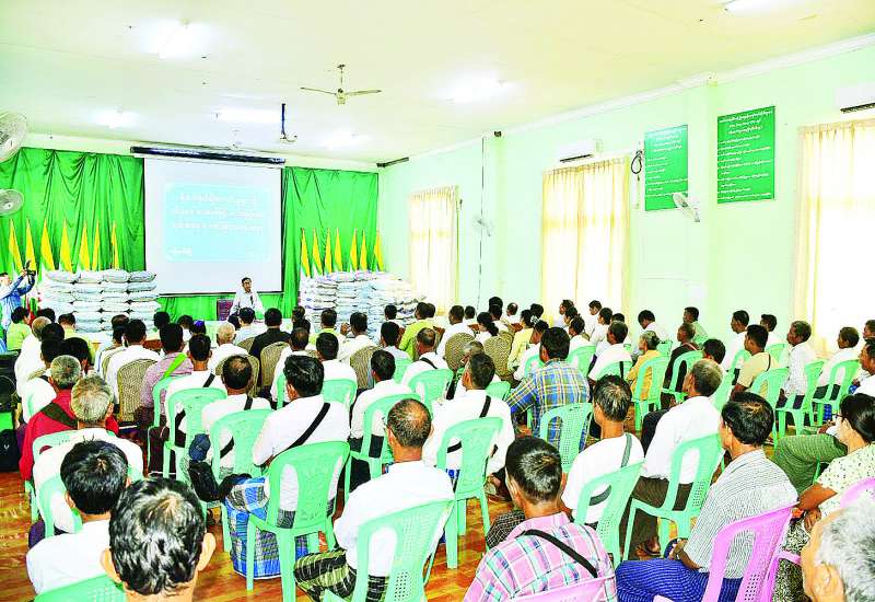 မိုးစပါးစိုက်ပျိုးတောင်သူများသို့ သီးနှံပေါ်ပေးစနစ်ဖြင့် ဓာတ်မြေဩဇာသွင်းအားစုပေးအပ်ခြင်း အခမ်းအနားကို ယနေ့နံနက်ပိုင်းတွင် ဒက္ခိဏသီရိမြို့နယ် အထွေထွေအုပ်ချုပ်ရေးဦးစီးဌာနရုံး၌ ကျင်းပသည်။
