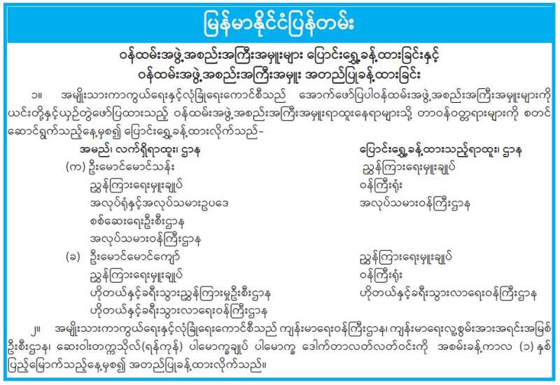 ရန်ကုန်မြို့နှင့် မန္တလေးမြို့အတွက် ရည်ညွှန်းလက်ကားဈေးနှုန်းများနှင့် ပြည်ထောင်စုနယ်မြေ နေပြည်တော်၊ တိုင်းဒေသကြီး/ပြည်နယ် မြို့တော်များအတွက် ရည်ညွှန်းလက်လီဈေးနှုန်းများ