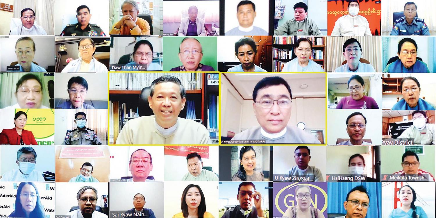 အစည်းအဝေးသို့ လူမှုဝန်ထမ်း၊ ကယ်ဆယ်ရေးနှင့် ပြန်လည်နေရာချထားရေးဝန်ကြီးဌာန ပြည်ထောင်စု ဝန်ကြီး ဒေါက်တာဝင်းမြတ်အေး၊ ပညာရေးဝန်ကြီးဌာန ပြည်ထောင်စုဝန်ကြီး ဒေါက်တာမျိုးသိမ်းကြီး၊ ဒုတိယ ဝန်ကြီးများ၊ တိုင်းဒေသကြီး၊ ပြည်နယ်လူမှုရေးဝန်ကြီး များ၊ နေပြည်တော်ကောင်စီဝင်၊ အမြဲတမ်းအတွင်းဝန် များ၊ ညွှန်ကြားရေးမှူးချုပ်များ၊ မြန်မာနိုင်ငံလုံးဆိုင်ရာ အမျိုးသမီးကော်မတီဝင်များ၊ ကလေးသူငယ်အခွင့်အရေး ဆိုင်ရာ အမျိုးသားအဆင့်ကော်မတီဝင်များနှင့် တာဝန်ရှိသူ များက အွန်လိုင်းဖြင့် ပါဝင်ဆွေးနွေးကြသည်။