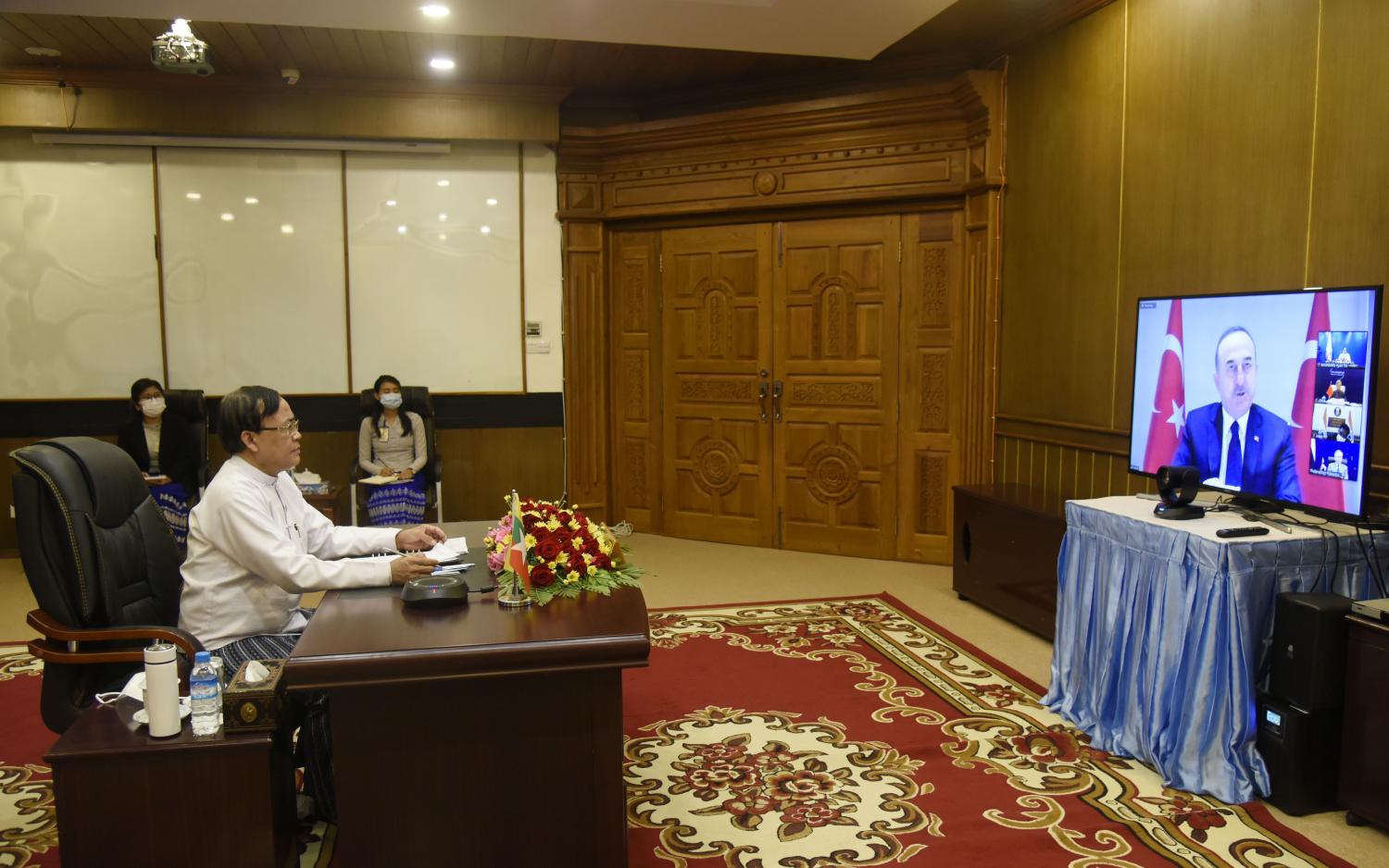 (၁၇)ကြိမ်မြောက် အာရှပူးပေါင်းဆောင်ရွက်ရေးဆိုင်ရာ ဆွေးနွေးပွဲ (အေစီဒီ) ဝန်ကြီးအဆင့် အစည်းအဝေးကို ယမန်နေ့ မွန်းလွဲပိုင်းတွင် တူရကီနိုင်ငံ အန်ကာရာမြို့၌ ဗီဒီယို ကွန်ဖရင့်စနစ်ဖြင့်ကျင်းပရာ အပြည်ပြည်ဆိုင်ရာ ပူးပေါင်းဆောင်ရွက်ရေးဝန်ကြီးဌာန ပြည်ထောင်စုဝန်ကြီး ဦးကျော်တင် တက်ရောက် မိန့်ခွန်းပြောကြားသည်။