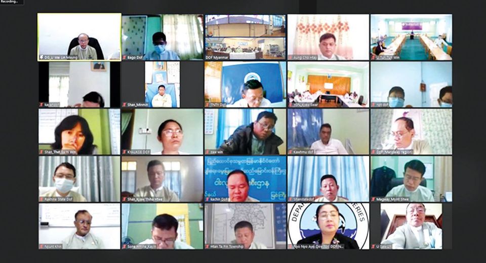 စိုက်ပျိုးရေး၊ မွေးမြူရေးနှင့် ဆည်မြောင်းဝန်ကြီးဌာန ငါးလုပ်ငန်းဦးစီးဌာန ငါးမွေးကန်များ ဧကစာရင်းမှန်ကန် စေရေးနှင့် ပယ်ဖျက်လိုသောငါးမွေးကန်များ စာရင်းများ နှင့်ပတ်သက်၍ ညှိနှိုင်းအစည်းအဝေးကို ယမန်နေ့က Zoom Meeting ဖြင့် ကျင်းပသည်။