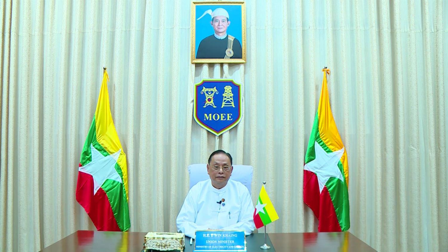 လျှပ်စစ်နှင့်စွမ်းအင်ဝန်ကြီးဌာန ပြည်ထောင်စုဝန်ကြီး ဦးဝင်းခိုင်သည် ယနေ့နံနက်ပိုင်း တွင် မြန်မာနိုင်ငံရေနံနှင့် သဘာဝဓာတ်ငွေ့ဝန်ဆောင်မှုအသင်း (Myanmar Oil and Gas Services Society MOGSS) က ကြီးမှူး၍ Online ဖြင့် ကျင်းပပြုလုပ်သော နှစ်ပတ်လည် အစည်း အဝေးဖွင့်ပွဲအခမ်းအနားသို့ Video Message ပေးပို့အမှာစကား ပြောကြားသည်။