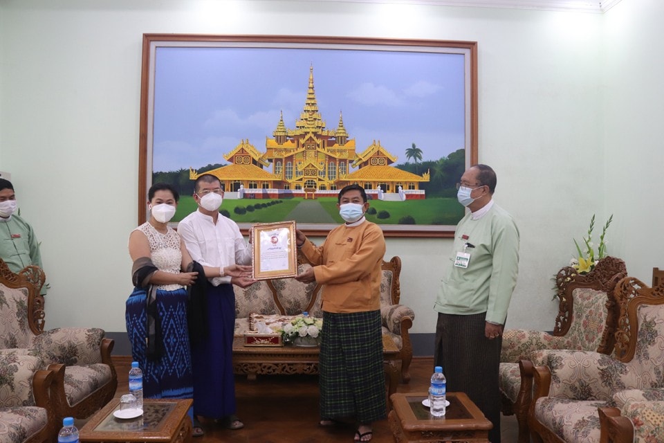 ရှေးဦးစွာ ပဲခူးတိုင်းဒေသကြီး ဝန်ကြီးချုပ် ဦးဝင်းသိန်းက လှူဒါန်ပေးမှုအပေါ် ကျေးဇူးတင် ဝမ်းမြောက်စကားပြောကြားပြီး ဦးအောင်ဝင်း+ဒေါ်နွယ်နွယ်ဦး (Petrol Star Co., Ltd) မိသားစုမှ ကိုဗစ်-၁၉ ရောဂါကာကွယ်ဆေးဝယ်ယူရန်အတွက် အလှူ‌ငွေ ကျပ်သိန်း(၅၀)ကျပ်အား ပေးအပ်လှူဒါန်းရာ ဝန်ကြီးချုပ်မှ ဂုဏ်ပြုမှတ်တမ်း ပြန်လည်ပေးအပ်ခဲ့ကြောင်း သိရသည်။
