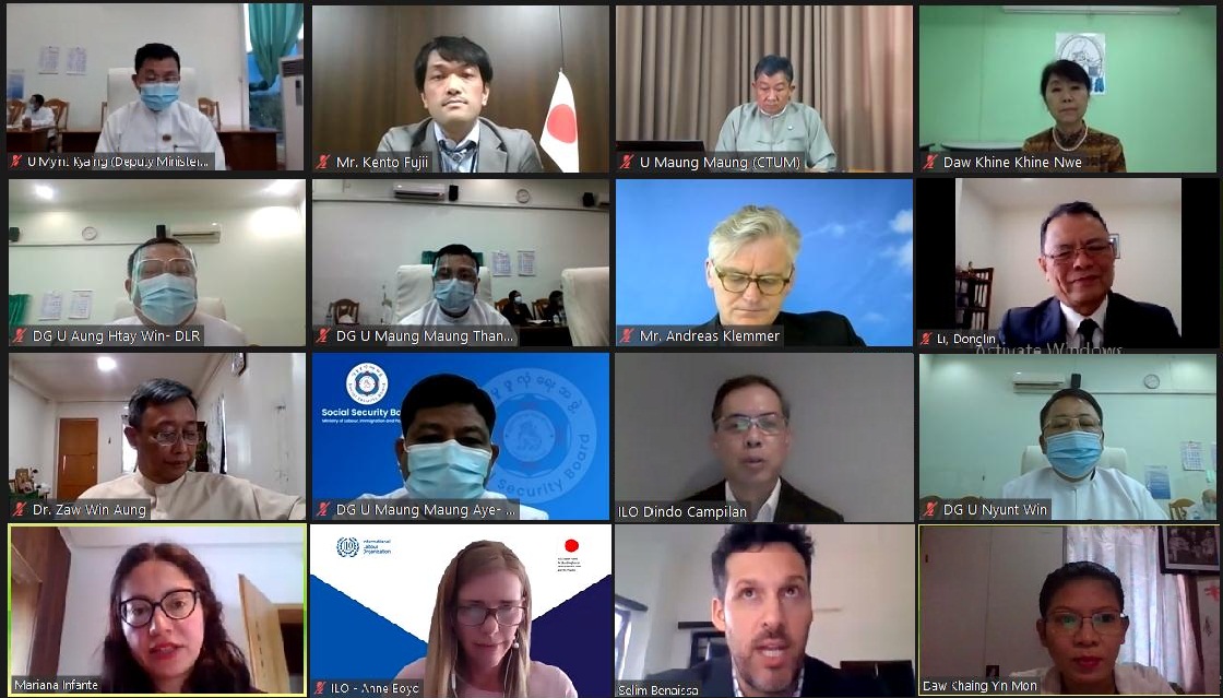 ယခု Online e-campus ကို လူမှုရေးဆွေးနွေးပွဲများ၊ အပြည်ပြည်ဆိုင်ရာစံနှုန်းများ၊ လုပ်ငန်းခွင် ဘေးအန္တရာယ် ကင်းရှင်းရေးနှင့် ကျန်းမာရေးဆိုင်ရာ ကဏ္ဍများအတွက် အရင်းအမြစ် အကန့်အသတ်ဖြင့်သာ စတင် ဆောင်ရွက်ထားပြီး နောက်ထပ်သင်တန်းများနှင့် သတင်းအချက် အလက်များ ထပ်မံဖြည့်စွက်ဆောင်ရွက် ပေးမည်ဟု သိရှိရသည့်အတွက် အထူးဝမ်းမြောက်ပါ ကြောင်း၊ e-campus အတွက် material ရွေးချယ်ရာ၌ ILO ၏ ဦးစားပေးမှုများကို ထည့်သွင်း စဉ်းစားသကဲ့သို့ မိမိတို့နိုင်ငံ၏ ဦးစားပေးကဏ္ဍများနှင့် လိုအပ်ချက်များ ကိုလည်း ထည့်သွင်း စဉ်းစားပေးရန် အကြံပြုလိုပါကြောင်း၊ ကိုဗစ် -၁၉ ကပ်ရောဂါကာလအတွင်း၌ ရောဂါ ကာကွယ်ရေး၊ ကုသရေးတို့နှင့်အတူ အရေးပါသည့် လုပ်ငန်းတစ်ခုမှာ လူမှုကာကွယ်ပေးရေး ဖြစ်ကြောင်း၊ မိမိတို့ဝန်ကြီးဌာန အနေဖြင့် အလုပ်သမားများအတွက် လူမှုကာကွယ်ပေးရေးကို အထူးအလေးထား ဆောင်ရွက်ပေး လျက်ရှိပါကြောင်း။
