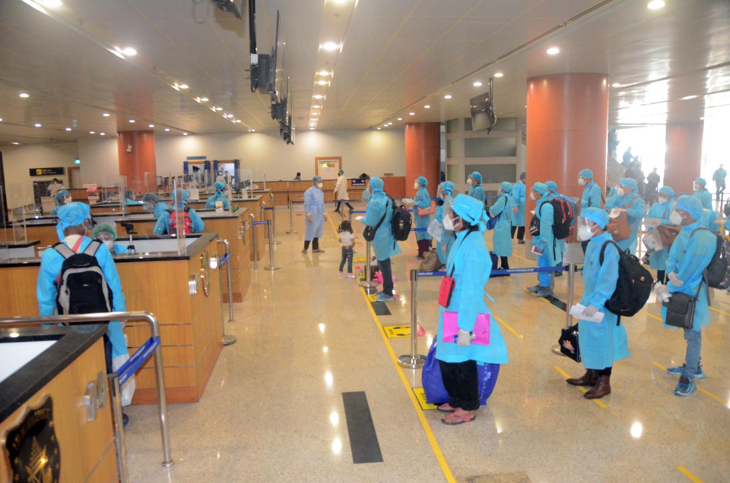 ၎င်းတို့ ရန်ကုန်အပြည်ပြည်ဆိုင်ရာလေဆိပ်သို့ ရောက်ရှိချိန်တွင် လူဝင်မှုကြီးကြပ်ရေး၊ ကျန်းမာရေးစိစစ်ရေး၊ သီးသန့်စီစဉ်ပေးသည့်နေရာ / သတ်မှတ် ဟိုတယ်များ၌ အသွားအလာ ကန့်သတ်မှု (၁၄) ရက်နှင့် နေအိမ်တွင် အသွားအလာကန့်သတ်မှု (၇) ရက် နေထိုင်စေရေး တို့ကို အလုပ်သမား၊ လူဝင်မှုကြီးကြပ်ရေးနှင့်ပြည်သူ့အင်အားဝန်ကြီးဌာန၊ ကျန်းမာရေးနှင့် အားကစား ဝန်ကြီးဌာနတို့မှ သက်ဆိုင်ရာ အခန်းကဏ္ဍ အလိုက် တာဝန်ယူ ဆောင်ရွက် ပေးခဲ့ကြသည်။