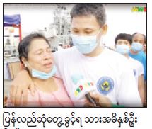 မိခင်။ ။ ကျွန်မသားလေးကို သေပြီလို့ အောက်မေ့ထားတာပါ။ ကိုဗစ် အတွင်းမှာ ရှစ်လ အဖမ်းခံထားရတယ်။ ကျွန်မမှာ စိတ်တွေမအေးရဘူး။ ညတွေဆို အိပ်လို့လည်းမပျော်ဘူး။ အဲဒါနဲ့ စစ်သင်္ဘောကြီးနဲ့ခေါ်မယ်ဆိုတာ ကျွန်မ Line ပေါ်မှာတွေ့တော့ အကုန် save ပြီး တော့ အကုန်ဖတ်ကြည့်တယ်။ အဲဒါ တောင်မယုံသေးဘူး။ မလေးမှာရှိတဲ့တူမတွေကို လှမ်းမေးတယ်။ သူတို့ကို ပိုက်ဆံ မပေးလို့ငါ့သားလေးမလွတ်တာလားပေါ့။ တူမတွေက ပြောတယ် မဟုတ်ပါဘူး။ သူတို့လည်းပေးပါတယ်။ ဒါပေမယ့်လည်း မရဘူးပေါ့။ အဲဒါနဲ့ စစ်သဘောကြီးနဲ့ပါလာ ပြီဆိုပြီး Line ပေါ်ကနေလှမ်းပြောတယ်။ အဲဒါနဲ့ သတင်းမှာလည်းတွေ့တယ်။ ကြည့်တော့တွေ့တယ်။ ထမင်းစားနေတာ တွေ့တယ်။ ၂၅ ရက်နေ့က တွေ့လိုက် တာလေ။ ရင်ထဲမှာဘယ်လိုဖြစ်သွားမှန်း မသိဘူး။ တော်တော်လည်း ဝမ်းသာပါ တယ်။ တပ်မတော်ကိုလည်း ကျေးဇူး အထူးတင်ပါတယ်။
