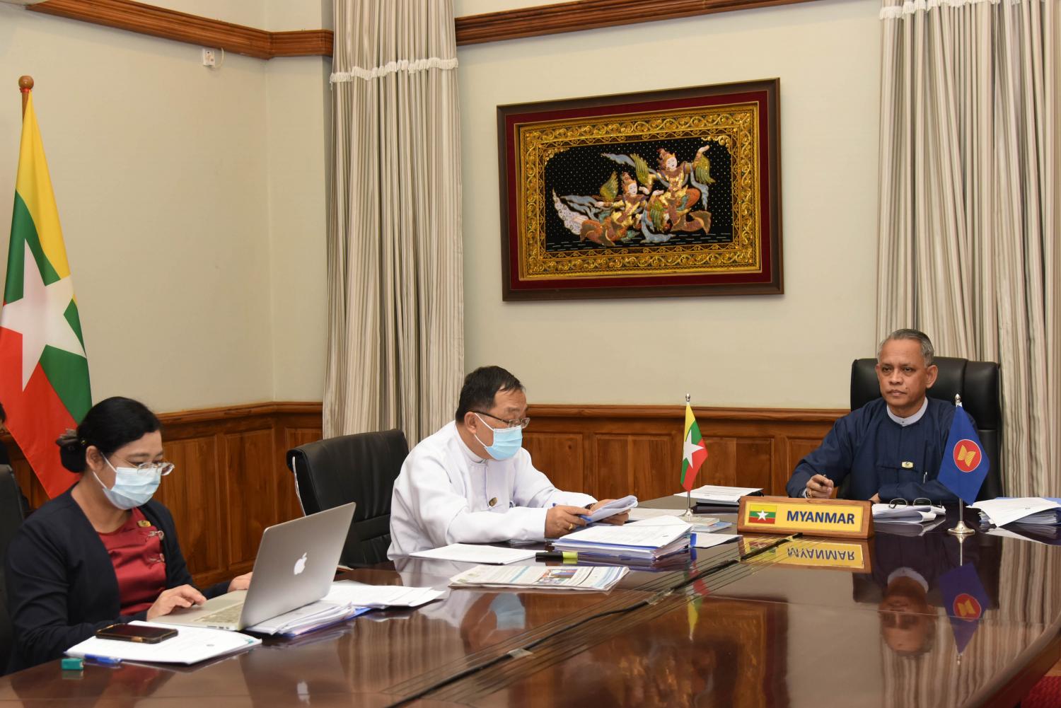 (၂၇) ကြိမ်မြောက် အာဆီယံ စီးပွားရေးဝန်ကြီးများ သီးသန့်အစည်းအဝေး (ဒုတိယနေ့) ကို ယနေ့တွင် ဗီဒီယိုကွန်ဖရင့်စနစ်ဖြင့် ဆက်လက်ကျင်းပရာ ရင်းနှီးမြှုပ်နှံမှုနှင့် နိုင်ငံခြားစီးပွားဆက် သွယ်ရေးဝန်ကြီးဌာန ပြည်ထောင်စုဝန်ကြီး ဦးအောင်နိုင်ဦး နေပြည်တော်မှ ပါဝင်တက်ရောက် သည်။