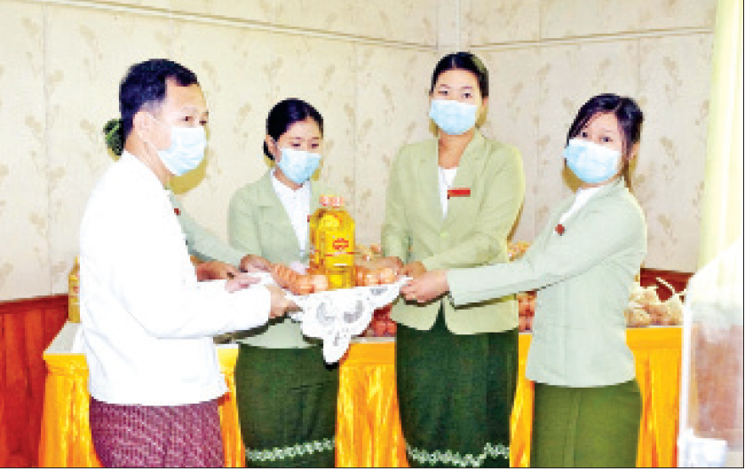 ထို့နောက် ထောက်ပံ့ငွေနှင့် စားသောက်ကုန် ပစ္စည်းများကို ပေးအပ်ရာ နေပြည်တော်ကောင်စီ ဥက္ကဋ္ဌ ဒေါက်တာမောင်မောင်နိုင်က ဌာနခွဲ(၁)ရှိ ဝန်ထမ်းများအား လည်းကောင်း၊ နေပြည်တော်