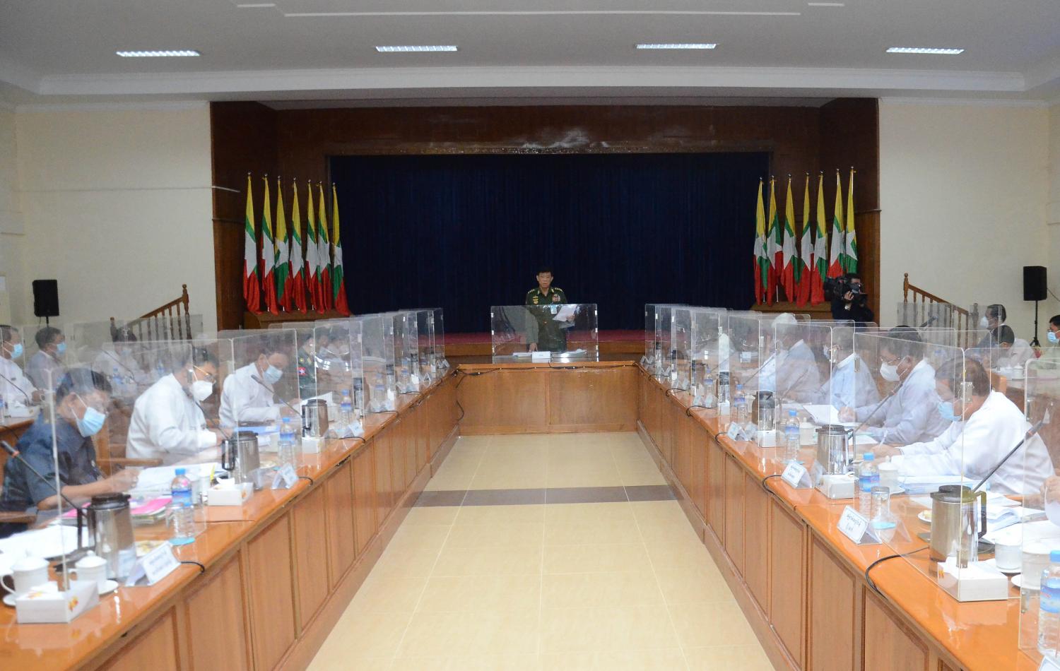 ယင်းနောက် အစည်းအဝေးသို့ တက်ရောက်လာကြသည့် ကော်မတီဝင်များက သက်ဆိုင်ရာ ကဏ္ဍအလိုက် ရှင်းလင်းဆွေးနွေးကြရာ တိုင်းရင်းသားရေးရာ၊ ပြည်သူ့ရေးရာ စီမံခန့်ခွဲမှုနှင့် ဝန်ဆောင်မှုရေးရာ ကော်မတီဥက္ကဋ္ဌ၊ နိုင်ငံတော်စီမံအုပ်ချုပ်ရေး ကောင်စီအဖွဲ့ဝင် ကာကွယ်ရေး ဝန်ကြီးဌာန၊ ပြည်ထောင်စုဝန်ကြီးက ပေါင်းစပ်ညှိနှိုင်းပေးပြီး အစည်းအဝေးကို ရုပ်သိမ်းလိုက် သည်။