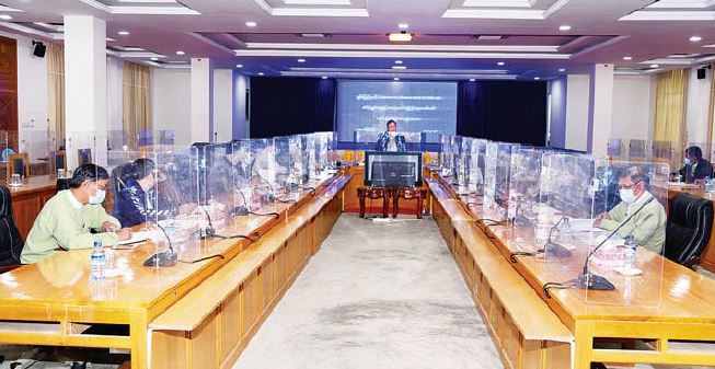 ရှမ်းပြည်နယ် Coronavirus Disease (COVID-19) ထိန်းချုပ်ရေးနှင့် အရေးပေါ်တုံ့ပြန်ရေးကော်မတီ လုပ်ငန်းညှိနှိုင်း အစည်းအဝေးကို ယနေ့နံနက်ပိုင်းက တောင်ကြီးမြို့ ရှမ်းပြည်နယ် စီမံအုပ်ချုပ်ရေး ကောင်စီရုံး အစည်းအဝေး ခန်းမ၌ ကျင်းပသည်။