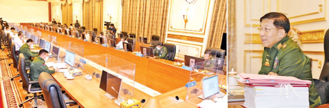 နေပြည်တော် မတ် ၁၁ နိုင်ငံတော်စီမံအုပ်ချုပ်ရေးကောင်စီ စီမံခန့်ခွဲရေးကော်မတီ အစည်းအဝေး (၃/၂၀၂၁)ကို ယနေ့မွန်းလွဲပိုင်းတွင် နေပြည်တော်ရှိ နိုင်ငံတော်စီမံအုပ်ချုပ်ရေး ကောင်စီဥက္ကဋ္ဌရုံး အစည်းအဝေးခန်းမ၌ ကျင်းပရာ နိုင်ငံတော်စီမံအုပ်ချုပ်ရေး ကောင်စီဥက္ကဋ္ဌ၊ တပ်မတော်ကာကွယ်ရေးဦးစီးချုပ် ဗိုလ်ချုပ်မှူးကြီးမင်းအောင်လှိုင် တက်ရောက် အမှာစကားပြောကြားသည်။ အစည်းအဝေးသို့ နိုင်ငံတော်စီမံအုပ်ချုပ်ရေးကောင်စီ ဒုတိယဥက္ကဋ္ဌ၊ ဒုတိယ တပ်မတော်ကာကွယ်ရေးဦးစီးချုပ်၊ ကာကွယ်ရေးဦးစီးချုပ်(ကြည်း)၊ ဒုတိယ ဗိုလ်ချုပ်မှူးကြီး စိုးဝင်း၊ ပြည်ထောင်စုဝန်ကြီးများ ဖြစ်ကြသည့် ဗိုလ်ချုပ်ကြီး မြထွန်းဦး၊ ဒုတိယဗိုလ်ချုပ်ကြီး စိုးထွဋ်၊ ဦးဝဏ္ဏမောင်လွင်၊ ဒုတိယဗိုလ်ချုပ်ကြီး ထွန်းထွန်းနောင်၊ ဦးဝင်းရှိန်၊ ဦးအောင်နိုင်ဦး၊ ဦးချစ်နိုင်၊ ဦးကိုကို၊ ဦးတင်ထွဋ်ဦး၊ ဗိုလ်ချုပ်ကြီးတင်အောင်စန်း၊ ဦးခင်မောင်ရီ၊ ဦးအောင်သန်းဦး၊ ဦးမြင့်ကြိုင်၊ ဒေါက်တာပွင့်ဆန်း၊ ဒေါက်တာညွန့်ဖေ၊ ဒေါက်တာသက်ခိုင်ဝင်း၊ ဦးရွှေလေး၊ ဒေါက်တာ သက်သက်ခိုင်၊ ဦးမောင်မောင်အုန်း၊ ဦးစောထွန်းအောင်မြင့်နှင့် ပြည်ထောင်စု ရှေ့နေချုပ် ဒေါက်တာဒေါ်သီတာဦးတို့ တက်ရောက်ကြသည်။ အစည်းအဝေးတွင် နိုင်ငံတော်စီမံအုပ်ချုပ်ရေးကောင်စီဥက္ကဋ္ဌက အဖွင့်အမှာ စကားပြောကြားရာတွင် မိမိတို့စီမံခန့်ခွဲရေး ကော်မတီ၏ အဓိကလုပ်ငန်းတာဝန်မှာ တိုင်းပြည်၏လူမှုရေး၊ စီးပွားရေး၊ နိုင်ငံတကာ ဆက်ဆံရေးကိစ္စရပ်များကို အကောင် အထည်ဖော်ဆောင်ရွက်ရသည့် အဖွဲ့အစည်းတစ်ခုဖြစ်ကြောင်း၊ မိမိတို့တာဝန်ယူ ဆောင်ရွက်ခဲ့သည့် တစ်လကျော်ကာလအတွင်း တစ်ချို့လုပ်ငန်းများရာနှုန်းပြည့် အောင်မြင် မှုများရှိပြီး ဆောင်ရွက်ရန်ကျန်ရှိသည့် လုပ်ငန်းကိစ္စရပ်များကိုလည်း ဖြစ်နိုင်သည့်လမ်းကြောင်းများမှ ဖြစ်အောင်ဆောင်ရွက်ရန်လိုကြောင်း၊ မိမိတို့စတင် တာဝန်ယူသည့်အချိန်မှစ၍ ချမှတ်ထားသည့် ရှေ့လုပ်ငန်းစဉ် ၅ ရပ်တွင် COVID-19 ကြောင့်ယိုင်နဲ့သွားသည့်စီးပွားရေးလုပ်ငန်းများ ပြန်လည်တည့်မတ်အောင်ဆောင်ရွက် ရမည်ဟုပါရှိကြောင်း၊ တိုင်းပြည်၏အဓိက မောင်းနှင်အားသုံးခုတွင် စီးပွားရေးသည် ပို၍အဓိကကျကြောင်း၊ ဦးတည်ချက် ၉ ရပ်တွင်ပါဝင်သည့် စိုက်ပျိုးမွေးမြူရေးကို အခြေခံသည့်စီးပွားရေးကို အဓိကလုပ်ရန်၊ ဈေးကွက်စီးပွားရေးကို ပီပီပြင်ပြင် ဖော်ဆောင်၍ နိုင်ငံတကာရင်းနှီးမြှုပ်နှံများကိုဖိတ်ခေါ်ရန်နှင့် အဆိုပါအချက်များနှင့် ဆက်စပ်သည့် ပြည်တွင်းစီးပွားရေးလုပ်ငန်း SME များကိုလည်း အားပေးကူညီ ဆောင်ရွက်ရမည်ဖြစ်ကြောင်း၊ ရောင်းကုန်ပစ္စည်းများ ပိုမိုထုတ်လုပ်ရရှိအောင် မျှော်မှန်း ဆောင်ရွက်