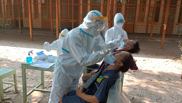 နေပြည်တော်၊ မတ် - ၁၂ ပြည်ပမှ ပြန်လည် ဝင်ရောက်လာသည့် မွန်ပြည်နယ်နှင့်ကရင်ပြည်နယ်အတွင်းရှိ ဒေသခံပြည်သူများအား COVID-19 ရောဂါနှင့်ပတ်သက်၍လိုအပ်သည့်စစ်ဆေးမှုများ ပြုလုပ်ရန် အခက်အခဲဖြစ်ပေါ်လျက်ရှိသဖြင့် မော်လမြိုင်မြို့ရှိ တက္ကသိုလ်(၁၀)မြို့နယ်အဆောင်၌ Quarantine ထားရှိခဲ့သည်။ ထိုသို့ Quarantine ထားရှိသည့် ပြည်ပမှပြန်လည်ဝင်ရောက်လာသူ ၁၇၁ ဦးကို ယနေ့နံနက်ပိုင်းတွင် အရှေ့တောင် တိုင်းစစ်ဌာနချုပ်၊ နယ်မြေခံတပ်မတော်ဆေးရုံမှ ဆရာဝန် များ၊ ပါရဂူများ၊ ဆေးမှူးများနှင့် သူနာပြုများက မြို့နယ်စီမံအုပ်ချုပ်ရေးကောင်စီအဖွဲ့ဝင်များ၊ လူမှုရေးအသင်းအဖွဲ့များနှင့် ပူးပေါင်း၍ နှာခေါင်း တို့ဖတ်၊ အာခေါင်တို့ဖတ်ရယူခြင်း၊ RDT နည်းဖြင့် စစ်ဆေးခြင်းများကို ဆက်လက် ဆောင်ရွက်ပေးခဲ့ကြောင်း သတင်းရရှိသည်။
