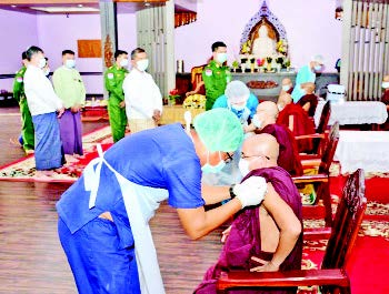 တပ်မတော်အနေဖြင့် တိုင်းစစ်ဌာနချုပ်နယ်မြေ အသီးသီးရှိ ထေရ်ကြီးဝါကြီး ဆရာတော်များ အပါအဝင် လူမျိုးမရွေး၊ ဘာသာမရွေး အသက်(၆၅) နှစ်အထက် သက်ကြီးဘိုးဘွားများနှင့် ဌာနဆိုင်ရာ ဝန်ထမ်းများနှင့် တိုင်းရင်းသားပြည်သူများအား ကိုဗစ်-၁၉ ရောဂါ ကာကွယ်ဆေး ထိုးနှံနိုင်ရေးအတွက် ဆေးပစ္စည်းများအား တပ်မတော်လေယာဉ်များဖြင့် သယ်ယူပို့ဆောင် ပေးခြင်းများနှင့် ကာကွယ်ဆေး ထိုးနှံပေးခြင်းများကို ဆောင်ရွက်ပေးလျက်ရှိသည်။