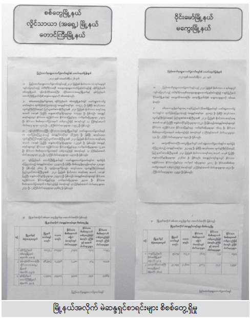 အတွင်းရေးမှူး ဦးသန်းဦးတို့က ပြည်သူ့ လွှတ်တော်၊ အမျိုးသားလွှတ်တော်၊ တိုင်းဒေသ ကြီးလွှတ်တော် အတွက် အသုံးမပြုရသေးသော မဲလက်မှတ်စာအုပ် ၄ အုပ်စီအား လည်းကောင်း၊ ပြည်သူ့ လွှတ်တော်အတွက် အသုံးမပြုရသေးသော မဲလက်မှတ်များအား ဂျန်းတောင် ကျေးရွာအုပ်စုမှ ၁ အုပ်၊ ချောင်းမကြီး ကျေးရွာအုပ်စုမှ ၄ အုပ် ၉ ရွက်၊ ဆည်ရွာလက်ပံကိုင်း ကျေးရွာအုပ်စုမှ ၂ အုပ် ၁၅ ရွက်နှင့် အမည်မမှတ်မိ ကျေးရွာအုပ်စုတို့မှ ၅ အုပ်တို့အား ပျော်ဘွယ်မြို့နယ် ကော်မရှင်အဖွဲ့ခွဲရုံးသို့ လာရောက်အပ်နှံသည်ကို တွေ့ရှိရ ကြောင်း၊ ဆိုလိုသည်မှာ သက်ဆိုင်ရာလွှတ်တော် ရွေးကောက်ပွဲနည်းဥပဒေများ အရ ကြိုတင်မဲ လက်မှတ် လက်ကျန်များကို သက်ဆိုင်ရာမဲရုံများသို့ အပ်နှံပြီး မဲရုံပိတ် ချိန်တွင် အလုပ်တွင် ထည့်သွင်းချိပ်ပိတ်ရ မည်ဖြစ်သော်လည်း ဆောင်ရွက်ခြင်းမရှိ သည်ကို စိစစ်တွေ့ရှိရပါကြောင်း၊ တာမွေ မြို့နယ် ပြည်သူ့ လွှတ်တော် ဆန္ဒမဲ လက်မှတ်များ မြေပြင်စစ်ဆေးရာတွင် ထုတ်ယူရရှိ ၁၄ဝ၃၁၄ စောင်၊ အသုံးပြု ၇၈၇၅၈ စောင်၊ ကျန်ရမည့် မဲလက်မှတ် ၆၁၅၅၆ စောင် ဖြစ်သော်လည်း မြေပြင် လက်ကျန် ၅၅၈၀၄ စောင်ဖြစ်ပြီး ကွာခြား ချက်အနေဖြင့် ပျောက်ဆုံး ၁၁၇၄၅ စောင်၊ အပို ၅၉၉၃ စောင်ဖြစ်သည်ကို စိစစ် တွေ့ရှိရပါကြောင်း၊ ထူးခြားချက်မှာ မဲရုံများတွင် ချိပ်ပိတ်သိမ်းဆည်းအပ်နှံပြီး နောက်ပိုင်းတွင် ရပ်ကွက်ရွေးကောက်ပွဲ ကော်မရှင် အဖွဲ့ခွဲများနှင့် မဲရုံမှူးများ လက်ဝယ်တွင် အကြောင်းအမျိုးမျိုးကြောင့် ကျန်ရှိနေသည့် အသုံးပြုပြီး ဆန္ဒမဲ လက်မှတ်ဖြတ်ပိုင်း ၁၅၃ စောင်နှင့် အသုံး မပြုရသေးသည့် မဲလက်မှတ် ၂၈၄၉နောင်တို့ကို ရပ်ကွက်ကော်မရှင်အဖွဲ့ခွဲ များက ထပ်မံလာရောက်အပ်နှံသဖြင့် မြို့နယ် ကော်မရှင် အဖွဲ့ခွဲတွင် သီးခြား ထိန်းသိမ်းထားသည့် မဲလက်မှတ်များ အဖြစ် စိစစ်တွေ့ရှိရပြီး သက်ဆိုင်ရာ လွှတ်တော် ရွေးကောက်ပွဲနည်းဥပဒေများ နှင့် ကိုက်ညီမှုမရှိသည်ကို တွေ့ရှိရ ကြောင်း၊ အမရပူရမြို့နယ် ပြည်သူ့ လွှတ်တော် ဆန္ဒမဲလက်မှတ်များ မြေပြင်စစ်ဆေးရာ တွင် ကျန်တန်းရပ်ကွက်၊ မဲရုံအမှတ်(၁) ၏ ပြည်သူ့လွှတ်တော် မဲလက်မှတ်များ ရှာဖွေတွေ့ရှိခြင်း မရှိသဖြင့် မဲလက်မှတ် ၄၂၃၁ စောင် ပျောက်ဆုံးနေကြောင်းတွေ့ရှိရပြီး ၎င်းပျောက်ဆုံး ပြည်သူ့ လွှတ်တော်မဲလက်မှတ်အစား အမျိုးသား လွှတ်တော်မဲလက်မှတ်များ ထည့်သွင်း တွက်ချက် ပါက ပျောက်ဆုံးမဲလက်မှတ် ၂၀၈၁ စောင်ဖြစ်သည်ကို တွေ့ရှိရကြောင်း ပြောကြားသည်။