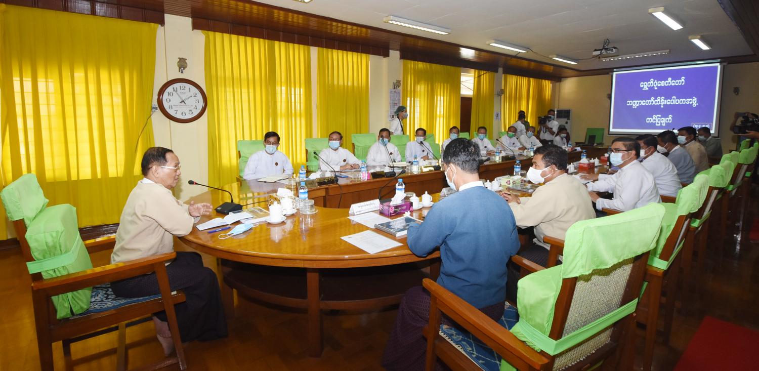 ထို့နောက် စေတီတော်ဂေါပကအဖွဲ့ရုံးခန်း၌ ဂေါပကအဖွဲ့ဝင် ဦးလှထွန်း က စေတီတော် မြတ်ကြီး၏ တည်ထားကိုးကွယ်မှုဆိုင်ရာ သမိုင်းကြောင်းများနှင့် ဘက်စုံ ပြုပြင်မွမ်းမံပြီးစီးမှု များကို ရှင်းလင်းတင်ပြရာ ပြည်ထောင်စုဝန်ကြီးက စေတီတော်မြတ်ကြီးအား ရဟန်းရှင်လူ ပြည်သူများ စိတ်ချမ်းမြေ့စွာ ဖူးမြော်ကြည်ညိုနိုင်ရန်၊ ကျန်းမာရေးနှင့် အားကစား ဝန်ကြီးဌာ န၏ ကိုဗစ်-၁၉ ရောဂါထိန်းချုပ်မှု၊ တားဆီး၊ ကာကွယ်ရေးဆိုင်ရာ ညွှန်ကြားချက်များ နှင့် အညီ ဆောင်ရွက်သွားရန်နှင့် စေတီတော်နှင့် ပတ်သက်၍ တိုးတက်စည်ပင်အောင် ဆောင်ရွက်စေ လိုကြောင်း၊ စေတီတော်ကြီး ဘက်စုံပြုပြင်မွမ်းမံခြင်းနှင့် သာသနာရေး လုပ်ငန်းများကို ဆောင် ရွက်ရာတွင် စေတီတော်ဂေါပကအဖွဲ့၏ သြဝါဒါစရိယ ဆရာတော်ကြီးများ၏ သြဝါဒကို ခံယူ ပြီး ဘဏ္ဍာရေးစည်းမျဉ်းများနှင့်အညီ ဆောင်ရွက်သွားကြရန် မှာကြားသည်။