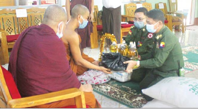 ဘုန်းတော်ကြီး ကျောင်းများ၊ သာသနာ့နွယ်ဝင် သီလရှင် ကျောင်းများနှင့် ဘာသာရေး ကျောင်းများတွင် ဆွမ်းအဆင်ပြေ စေရေးအတွက် တပ်မတော် (ကြည်း၊ ရေ၊ လေ)အရာရှိစစ်သည် အရာထမ်း၊ အမှုထမ်းများက တိုင်းစစ်ဌာနချုပ်များ အလိုက် မြို့နယ်အသီးသီး၌ ဆွမ်းဆန်တော် ဆီ၊ ဆား၊ ပဲအမယ်လေးမျိုး နှင့် လှူဖွယ်ပစ္စည်းများလှူဒါန်းခြင်း၊ နေ့ဆွမ်း၊ အရုဏ်ဆွမ်း ဆက်ကပ် လှူဒါန်းခြင်းနှင့် ကျန်းမာရေး စစ်ဆေးမှုများကို ဆောင်ရွက်လျက်ရှိသည်။