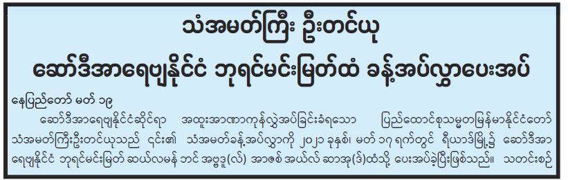သံအမတ်ကြီး ဦးတင်ယု ဆော်ဒီအာရေဗျနိုင်ငံ ဘုရင်မင်းမြတ်ထံ ခန့်အပ်လွှာပေးအပ်