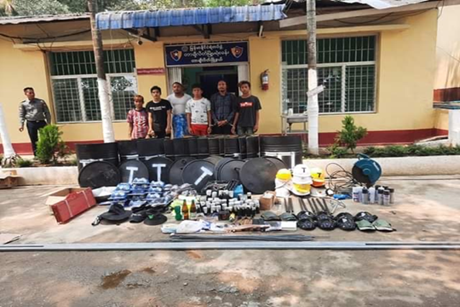 အလားတူ ရှမ်းပြည်နယ်(အရှေ့ပိုင်း)၊ တာချီလိတ်မြို့၊ ပုန်းထွန်ရပ်ကွက်၊ ဝမ်မိုင်ရွာ ရှိ အောင်နိုင်ဦး(ခ)အောင်နိုင်(ဘ)ဦးဘစိန် နေထိုင်သည့် နေအိမ်တွင် ဆူပူအကြမ်းဖက်ရာတွင် အသုံးပြုသည့်ပစ္စည်းများပြုလုပ်နေကြောင်း သိရှိရသဖြင့် ဝင်ရောက်ရှာဖွေရာ အောင်နိုင်ဦး အပါအဝင် အမျိုးသား ၆ ဦးကို ဒေသန္တရလက်ပစ်ဗုံးအကြီး/အသေး ၅၃ လုံး၊ ဒိုင်းကာ အကြီး^အသေး ၂၆ ခု၊ သံချွန် ၁၀ ချောင်း၊ သံဖြတ်စက် ၂ ခု၊ ကားဘီးများ ပေါက်စေရန် မူလီစိုက်ထားသော ဖော့တုံးအသေး ၁၀၀ ခုနှင့် ဆူပူအကြမ်းဖက်ရာတွင် အသုံးပြုသည့် ဆက်စပ်ပစ္စည်းများနှင့်အတူ ဖမ်းဆီးရမိခဲ့သည်။