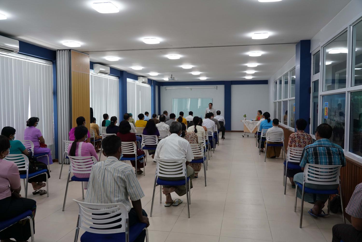 ထိုနောက် ပြည်ထောင်စုဝန်ကြီးသည် ဗိုလ်ဆွန်ပက်လမ်းရှိ ဟိုတယ်နှင့်ခရီးသွားလာရေး ဝန်ကြီးဌာနမှ ဖွင့်လှစ်ထားရှိသည့် ခရီးသွားလုပ်ငန်းဖွံ့ဖြိုးတိုးတက်ရေးဗဟိုဌာနသို့ ရောက်ရှိပြီး ရန်ကုန်တိုင်းဒေသကြီးရုံးခွဲရှိ အရာထမ်း၊အမှုထမ်းများနှင့် တွေ့ဆုံ၍ ဝန်ထမ်းများအနေဖြင့် နိုင်ငံ့ ဝန်ထမ်းများဖြစ်သည့်အတွက် လုပ်ငန်းတာဝန်များကို လစ်ဟင်းမှု မရှိစေဘဲ နိုင်ငံတော် အစိုး ရနှင့်ဝန်ကြီးဌာန၏ မူဝါဒနှင့်အညီ လိုက်နာလုပ်ဆောင်ရန် အလေးအနက်ထားပြောကြား လိုကြောင်း၊ နိုင်ငံ့ဝန်ထမ်းဖြစ်သည့် အလျောက် နိုင်ငံ့ဝန်ထမ်းနည်းဥပဒေ တွင် ပါရှိသည့်အတိုင်း ပါတီနိုင်ငံရေးကင်းရှင်းပြီး ဥပဒေဘောင်အတွင်းနေထိုင်ရန်နှင့် ဝန်ထမ်း စည်းမျဉ်းစည်းကမ်းများ နှင့်အညီ အမိန့်နှင့်ညွှန်ကြားချက်ကို လိုက်နာရန် လိုအပ်ကြောင်း၊ ဟိုတယ်နှင့်ခရီးသွား လုပ်ငန်း ဖွံ့ဖြိုးတိုးတက်ရေးအတွက် ဝန်ထမ်းများအားလုံး အထက်၊အောက် နားလည်ယုံကြည်မှု တည်ဆောက်ပြီး အားသွန်ခွန်စိုက် ညီညီညွတ်ညွတ် ပူးပေါင်းဆောင်ရွက် သွားရန်လိုအပ်ပါ ကြောင်းနှင့် လုပ်ငန်းများဆောင်ရွက်ရာတွင် လိုအပ်ချက်နှင့် အခက်အခဲများကို တင်ပြဆွေးနွေး ပေးစေလိုကြောင်း ပြောကြားသည်။