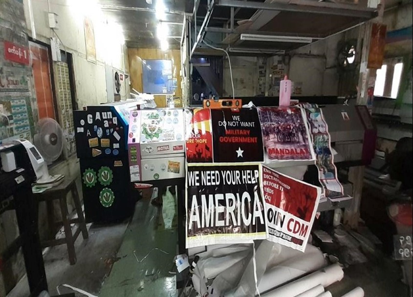 ယင်းကဲ့သို့ နိုင်ငံတော်အစိုးရအား ဆန့်ကျင်သည့် ရည်ရွယ်ချက်အမျိုးမျိုးဖြင့် ပုံနှိပ်ထုတ်ဝေခြင်း၊ မိတ္တူကူးခြင်း စသည့်လုပ်ငန်းရပ်များကို စီးပွားရေးလုပ်ငန်းအဖြစ် ဆောင်ရွက်နေကြသော ကွန်ပျူတာဆိုင်များ၊ မိတ္တူကူးဆိုင်များသည် ၂၀၁၄ ခုနှစ်၊ မတ် ၁၄ ရက်တွင် ထုတ်ပြန်ခဲ့သည့် ပုံနှိပ်ခြင်းနှင့် ထုတ်ဝေခြင်းလုပ်ငန်းဥပဒေနှင့် ငြိစွန်းသည့်အပြင် ရာဇသတ်ကြီးဥပဒေပုဒ်မ ၅၀၅-က ဖြင့် အရေးယူခံရသည့် ပြစ်မှုကျူးလွန်မှုများကို ဆောင်ရွက်နေခြင်းဖြစ်သည့်အတွက် ယင်းလုပ်ငန်း များတွင် ပါဝင်ဆောင်ရွက်ခြင်းမပြု(မပြု)လုပ်ကြပါရန်နှင့် စစ်ဆေးတွေ့ရှိပါက ဥပဒေနှင့်အညီ အရေးယူဆောင်ရွက်သွားမည်ဖြစ်ကြောင်း မတ် ၈ ရက်တွင် သတင်းထုတ်ပြန် အသိပေးထားရှိပြီးဖြစ်ကြောင်း။