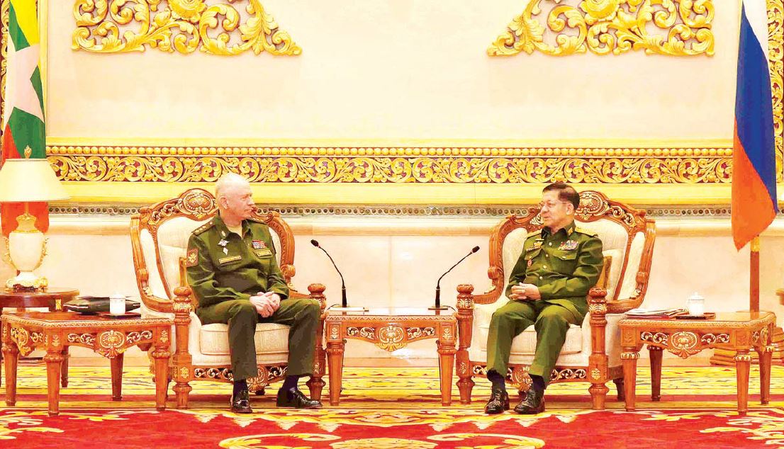 နေပြည်တော် မတ် - ၂၆ နိုင်ငံတော်စီမံအုပ်ချုပ်ရေးကောင်စီဥက္ကဋ္ဌ တပ်မတော်ကာကွယ်ရေးဦးစီးချုပ် ဗိုလ်ချုပ်မှူးကြီး မင်းအောင်လှိုင် သည် မြန်မာ့တပ်မတော်၏ (၇၆)နှစ်မြောက်တပ်မတော်နေ့အခမ်းအနားသို့ ပါဝင်တက်ရောက်မည့် ရုရှားဖက်ဒရေးရှင်းနိုင်ငံ ဒုတိယကာကွယ်ရေးဝန်ကြီး Colonel General Alexander Vasilyevich Fomin ဦးဆောင်သော ကိုယ်စားလှယ်အဖွဲ့အား ယနေ့ နံနက်ပိုင်းတွင် နေပြည်တော်ရှိ ဇေယျာသီရိဗိမာန် ဧည့်ခန်းမဆောင်၌ လက်ခံတွေ့ဆုံသည်။ အဆိုပါတွေ့ဆုံပွဲသို့ နိုင်ငံတော်စီမံအုပ်ချုပ်ရေးကောင်စီဥက္ကဋ္ဌ တပ်မတော်ကာကွယ်ရေး ဦးစီးချုပ်နှင့်အတူ၊ ကောင်စီဒုတိယဥက္ကဋ္ဌ ဒုတိယတပ်မတော်ကာကွယ်ရေးဦးစီးချုပ် ကာကွယ်ရေး ဦးစီးချုပ်(ကြည်း) ဒုတိယဗိုလ်ချုပ်မှူးကြီး စိုးဝင်း၊ ကောင်စီဝင်များဖြစ်ကြသည့် ဗိုလ်ချုပ်ကြီး မောင်မောင်ကျော်၊ ဒုတိယဗိုလ်ချုပ်ကြီး မိုးမြင့်ထွန်း၊ ကောင်စီတွဲဖက်အတွင်းရေးမှူး ဒုတိယ ဗိုလ်ချုပ်ကြီး ရဲဝင်းဦး၊ ညှိနှိုင်းကွပ်ကဲရေးမှူး (ကြည်း၊ ရေ၊ လေ) ဗိုလ်ချုပ်ကြီး မောင်မောင်အေး၊ ကာကွယ်ရေးဦးစီးချုပ်(ရေ) ဗိုလ်ချုပ်ကြီး မိုးအောင် နှင့် ကာကွယ်ရေးဦးစီးချုပ်ရုံးမှ တပ်မတော်အရာရှိကြီးများ တက်ရောက်ကြပြီး ရုရှားဖက်ဒရေးရှင်းနိုင်ငံ ဒုတိယကာကွယ်ရေး ဝန်ကြီးနှင့်အတူ ရုရှားဖက်ဒရေးရှင်းနိုင်ငံပြည်သူ့ကောင်စီဥက္ကဋ္ဌနှင့် သမ္မတ၏ သတင်းပြန်ကြား ရေးဆိုင်ရာအကြံပေးပုဂ္ဂိုလ်ဖြစ်သူ Mr.Pavel GUSEV ၊ Head of Moscow Buddhist Society ဖြစ်သူ Mr. Bair B.TSYMPILOV ၊ ရုရှားနိုင်ငံ စစ်ဘက်၊ အရပ်ဘက် မှအရာရှိကြီးများနှင့် မြန်မာနိုင်ငံဆိုင်ရာ ရုရှားနိုင်ငံစစ်သံမှူး Col Sergey S. KURCHENKO တို့ တက်ရောက်ကြ သည်။ တွေ့ဆုံဆွေးနွေးရာတွင် နိုင်ငံတော်စီမံအုပ်ချုပ်ရေးကောင်စီဥက္ကဋ္ဌ တပ်မတော် ကာကွယ်ရေးဦးစီးချုပ်က မြန်မာ့တပ်မတော်၏ (၇၅)နှစ်မြောက်စိန်ရတု နှစ်ပတ်လည်နေ့ သည် ၂၀၂၀ ပြည့်နှစ်တွင်ကျရောက်ခဲ့ပြီး COVID-19 ရောဂါဖြစ်ပွားမှုကြောင့် ကျင်းပနိုင် ခဲ့ခြင်း မရှိသဖြင့် ယခုနှစ်တွင် ကျရောက်သည့် (၇၆)နှစ်မြောက်နှစ်ပတ် လည်နေ့နှင့်ပေါင်း၍ ပြုလုပ်မည်ဖြစ်ကြောင်းနှင့် ယခုကဲ့သို့ ပါဝင်တက်ရောက်သည့်အတွက် ဝမ်းမြောက်မိပါ ကြောင်း၊ COVID-19 ရောဂါဖြစ်ပွားမှုများနှင့် မိမိတို့နိုင်ငံ၏ နိုင်ငံရေးဖြစ်ပေါ်ပြောင်းလဲမှု အခြေအနေများအကြားမှ ယခုကဲ့သို့ ပါဝင်တက်ရောက်ရန် လာရောက်ခြင်းကို ဝမ်းမြောက်စွာ ကြိုဆို ပါကြောင်းနှင့် မိမိတို့နှစ်နိုင်ငံသည် အလှမ်းဝေးသော်လည်း တစ်ဦးနှင့်တစ်ဦး လေးစားတန်ဖိုး ထားမှုများကို ပိုမိုခိုင်မြဲစေမည်ဖြစ်ပါကြောင်း ဦးစွပြောကြားသည်။ ရုရှားဖက်ဒရေးရှင်းနိုင်ငံ ဒုတိယကာကွယ်ရေးဝန်ကြီး ကပြန်လည်ပြောကြားရာတွင် ယခုကဲ့သို့ မိမိတို့ကိုယ်စားလှယ်အဖွဲ့အား နွေးထွေးစွာက