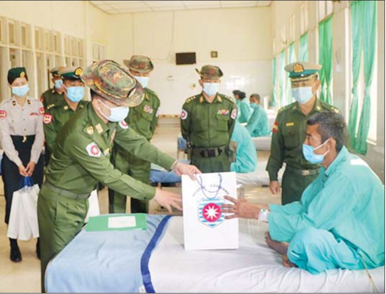 တိုင်းဒေသကြီးနှင့် ပြည်နယ်များရှိ တိုင်းရင်းသား ပြည်သူများအတွက် တပ်မတော်ဆေးရုံများနှင့် ယာယီကုသရေးဆေးရုံများတွင် ကျန်းမာရေးစောင့် ရှောက်မှုများကို ဆောင်ရွက်ပေးလျက်ရှိရာ ဖေဖော် ဝါရီ ၅ ရက်မှ ယနေ့အထိ ပြင်ပလူနာ ၁ဝဝ၈၇ ဦး၊ အတွင်းလူနာ ၄၁၉၁ ဦးကို တပ်မတော်မှ ပါရဂူများ၊ ဆေးမှူးများ၊ သူနာပြုများဖြင့် ကျန်းမာရေးစစ်ဆေး ပေးခြင်း၊ ခွဲစိတ်ရန်လိုအပ်သည့်လူနာများကို ခွဲစိတ် ပေးခြင်း၊ ဆေးရုံတက်ရောက် ကုသရန်လိုအပ်သော လူနာများကို ဆေးရုံတကာ ကျန်းမာရေးစောင့်ရှောက် ပေးခြင်းများ ဆောင်ရွက်ပေးသည့်အပြင် ဆေးရုံ တက်လူနာများနှင့် လူနာစောင့်များ နေထိုင်စားသောက်ရေး အဆင်ပြေစေရန်အတွက် ကိုပါ စီမံဆောင်ရွက်ပေးသည်။