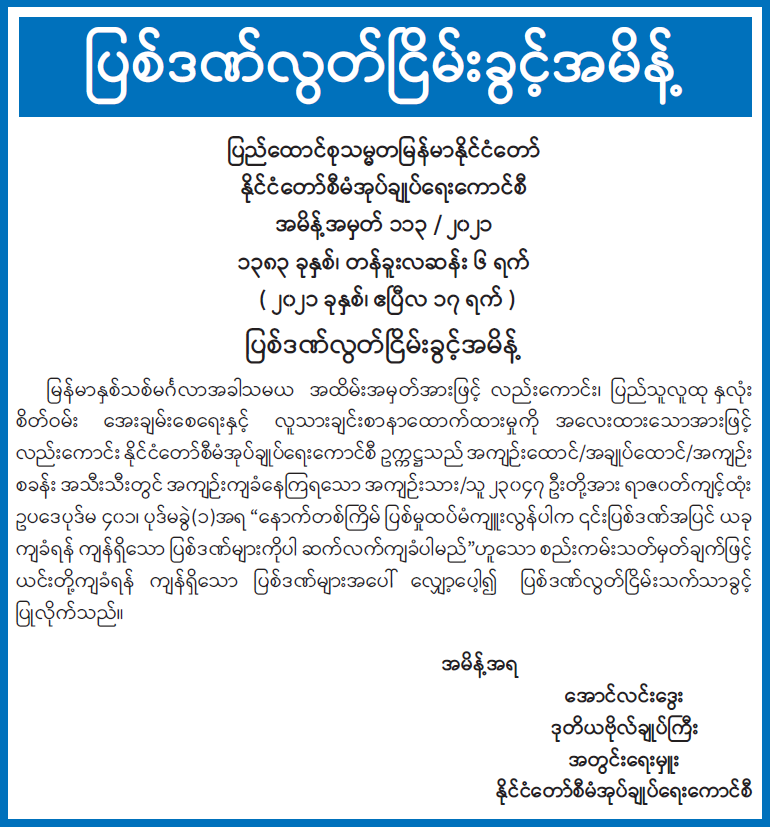ဝန်ကြီးဌာန ကြေညာချက်များ