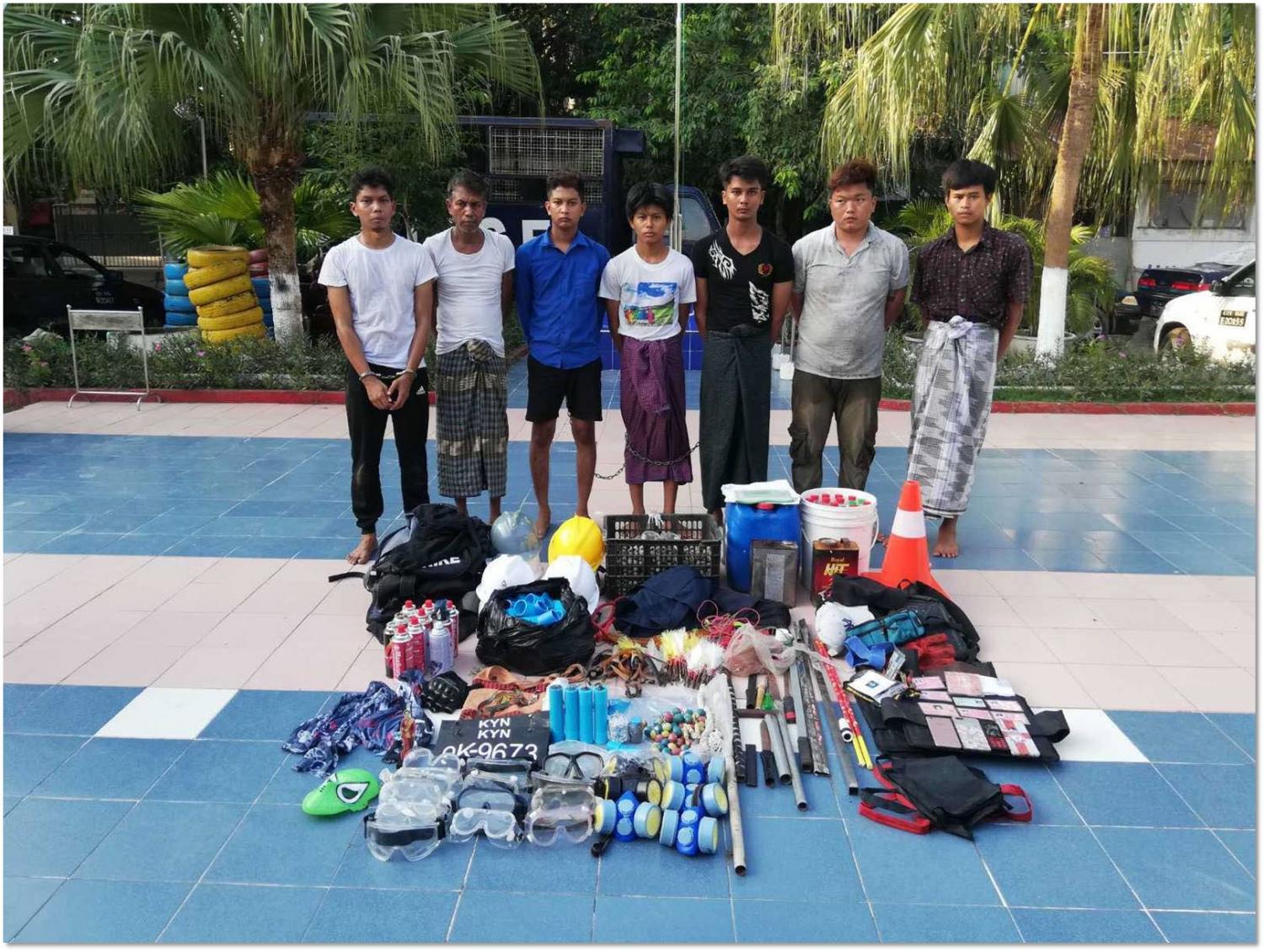 ဆူပူအကြမ်းဖက်မှုများ ဆောင်ရွက်ရာတွင်အသုံးပြုသည့် လက်နက်များနှင့် ဆက်စပ် ပစ္စည်းများနှင့် အကြမ်းဖက်လုပ်ရပ်များလုပ်ဆောင်သူများအား ဖမ်းဆီးရမိ