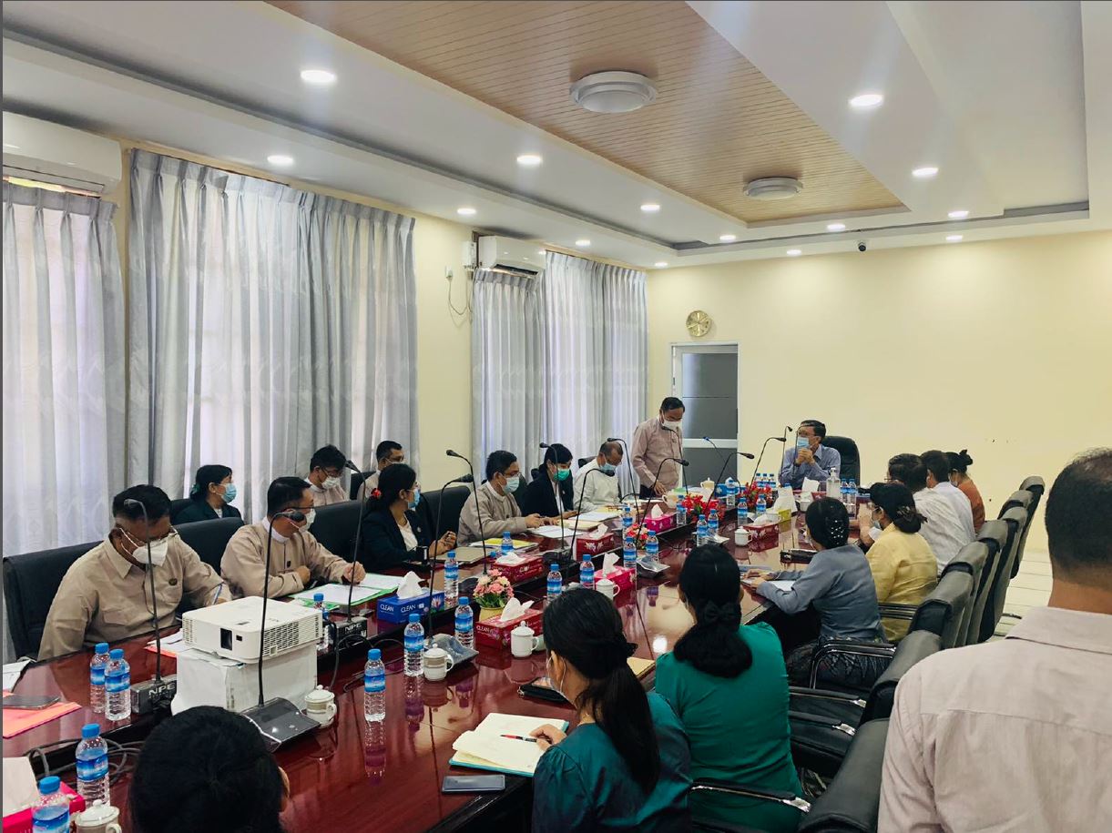 တွေ့ဆုံစဉ်  အကောက်ခွန်ဦးစီးဌာန၊ ညွှန်ကြားရေးမှူးချုပ် ဦးကျော်ထင်က ဦးစီးဌာန၏ လုပ်ငန်းဆောင်ရွက်မှုဆိုင်ရာ ကိစ္စရပ်များကို ရှင်းလင်းတင်ပြသည်။