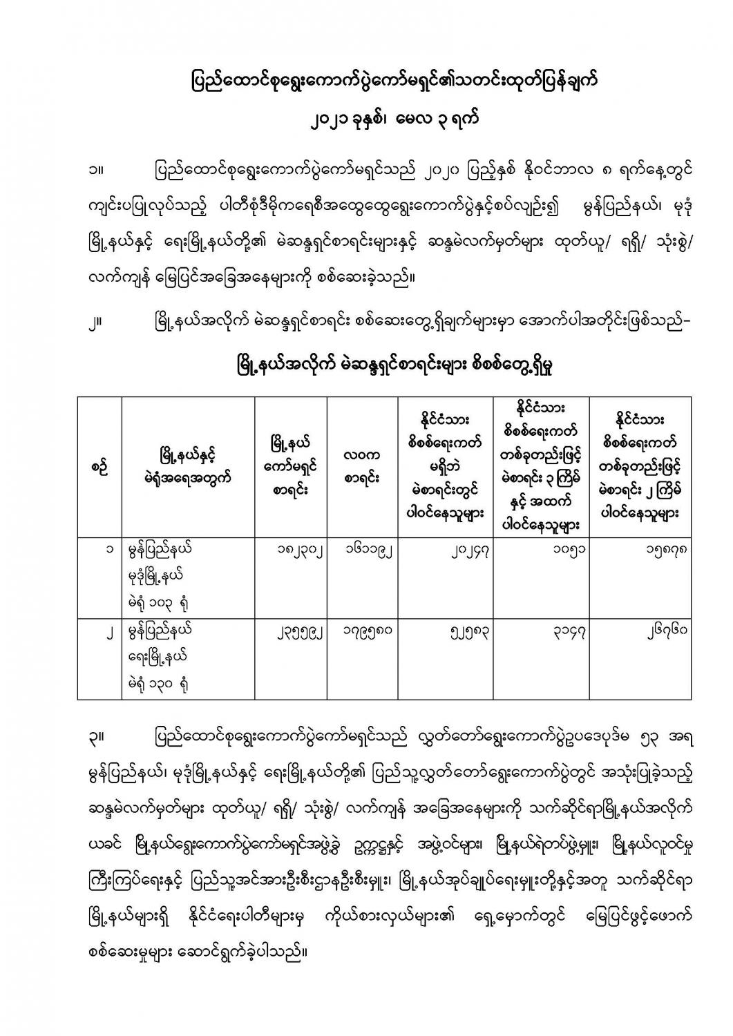 ပြည်ထောင်စုရွေးကောက်ပွဲကော်မရှင်၏သတင်းထုတ်ပြန်ချက် ၂၀၂၁ ခုနှစ်၊ မေလ ၃ ရက်