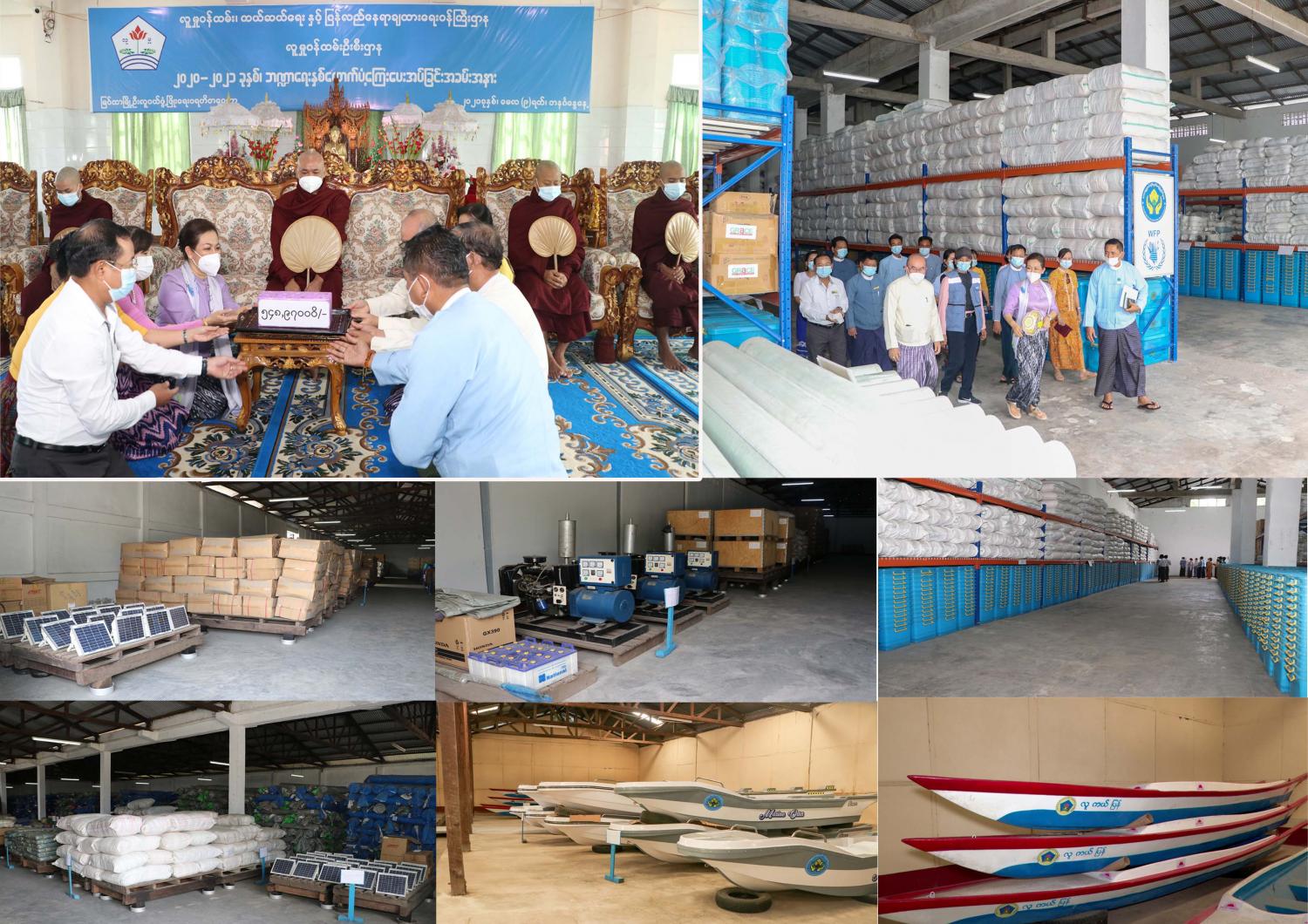 မွန်းလွဲပိုင်းတွင် ပြည်ထောင်စုဝန်ကြီးနှင့် တာဝန်ရှိသူများသည် မရမ်း ကုန်းမြို့နယ်၊ ကျိုက်ဝိုင်း ဘုရားလမ်းရှိ ဘေးအန္တရာယ်ဆိုင်ရာ စီမံခန့်ခွဲမှုဦးစီးဌာန၊ ဗဟိုသိုလှောင်ရုံ(ရန်ကုန်)သို့ ရောက်ရှိခဲ့ပြီး မိုးကြိုကာလနှင့် မိုးဦးကာလတွင် ဖြစ်ပွားတတ်သော သဘာဝဘေးအန္တရာယ် များအတွက်ကြိုတင်ပြင်ဆင်ဆောင်ရွက်ထားရှိမှုအနေဖြင့် ကယ်ဆယ်ရေးပစ္စည်းများ သိုလှောင် ထားရှိမှုနှင့် ဖြန့်ခွဲထောက်ပံ့နိုင်ရေး စီစဉ်ဆောင်ရွက်ထားရှိမှုများကို ကြည့်ရှုစစ်ဆေးရာ တိုင်းဒေသကြီး ဦးစီးမှူးနှင့် သိုလှောင်ရုံတာဝန်ခံက ဗဟိုသိုလှောင်ရုံ (ရန်ကုန်မြို့)တွင် ကယ် ဆယ်ထောက်ပံ့ရေးပစ္စည်း (၁၇)မျိုး၊ အိမ်ထောင်စု (၁၅၀၀၀)စာ၊ ဒေသဖွံ့ဖြိုး ရေးသုံးပစ္စည်း များနှင့် အလှူပစ္စည်းများ၊ ရန်ကုန်တိုင်း ဒေသကြီးဦးစီးမှူးရုံး သိုလှောင်ရုံတွင် ကယ်ဆယ် ရေးပစ္စည်း အိမ်ထောင်စု (၅၀၀၀)စုစာ သိုလှောင်ထားရှိပါကြောင်း၊ ဗဟိုသိုလှောင်ရုံ (ရန်ကုန်မြို့)မှ အောက်မြန်မာပြည်ရှိ ကရင် ပြည်နယ်၊ မွန်ပြည်နယ်၊ ရခိုင်ပြည်နယ်၊ တနင်္သာရီ တိုင်းဒေသကြီး၊ ပဲခူးတိုင်းဒေသကြီး၊ ရန်ကုန်တိုင်းဒေသကြီးနှင့် ဧရာဝတီတိုင်းဒေသကြီး တို့အတွင်း တိုင်းဒေသကြီး/ပြည်နယ်/ခရိုင်/မြို့နယ် သိုလှောင်ရုံ စုစုပေါင်း(၅၀)သို့ ကယ်ဆယ် ထောက်ပံ့ရေးပစ္စည်းကို အဓိကပေးပို့ဖြည့်တင်းလျက်ရှိပြီး ကျန်တိုင်းဒေသကြီး/ ပြည်နယ်/ ခရိုင်/မြို့နယ် သိုလှောင်ရုံများသို့လည်း အရေးပေါ်အခြေအနေနှင့် လိုအပ်ချက်ရှိမှုအပေါ် မူတည်၍ ပေးပို့ဖြည့်တင်းလျက်ရှိပါကြောင်း ရှင်းလင်းတင်ပြကြသည်။