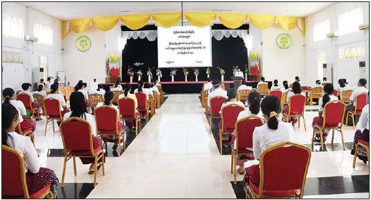 သင်တန်းသားများအနေဖြင့် နိုင်ငံ့ဝန်ထမ်းများ ဖြစ်သည်ကို အမြဲသတိချပ်ရန် လိုအပ်ကြောင်း၊ နိုင်ငံ့ဝန်ထမ်းများအတွက် နိုင်ငံ့ဝန်ထမ်းဥပဒေ၊လက်စွဲ၊ နည်းဥပဒေများတွင် နိုင်ငံတကာစံများ အတိုင်း ရပိုင်ခွင့်၊ တာဝန်၊ လူမှုဖူလုံရေး စသည်တို့ကို ပြဋ္ဌာန်းထား ပြီးဖြစ်ကြောင်း၊ သင်တန်း သားများမှာ နိုင်ငံ့ဝန်ထမ်းများဖြစ်သဖြင့် ပါတီနိုင်ငံရေးကင်းရှင်း၍ နိုင်ငံ့ဝန်ထမ်းပီပီ နိုင်ငံ တော်၊ နိုင်ငံတော်အစိုးရနှင့် နိုင်ငံသားတို့၏ကျေးဇူးသစ္စာကို စောင့်သိရိုသေပြီး နိုင်ငံတော်၊ နိုင်ငံသားများနှင့် နိုင်ငံတော်အစိုးရ၏ အကျိုးအတွက် ချမှတ်ထားသည့် လုပ်ငန်းစဉ်များ အောင်မြင်ရေး တာဝန်ကျေပွန်စွာ ထမ်းဆောင်ကြ ရမည် ဖြစ်ကြောင်း။