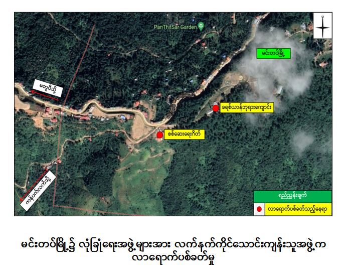 အလားတူ ည ၈ နာရီ ၅၀ မိနစ်အချိန်တွင် မင်းတပ်မြို့ရှိ နယ်မြေခံတပ်၊ တပ်ဂိတ်နှင့် အနောက်ရပ်ကွက်ရှိ ခရစ်ယာန်ဘုရားရှိခိုးကျောင်း၌ လုံခြုံရေးဆောင်ရွက်နေသော လုံခြုံရေး တပ်ဖွဲ့ဝင်များအား လက်နက်ကိုင်သောင်းကျန်းသူများမှ လက်နက်ငယ်၊ တူမီးသေနတ်များဖြင့် လာရောက်ပစ်ခတ်တိုက်ခိုက်ခဲ့သဖြင့် လုံခြုံရေးတပ်ဖွဲ့ဝင်များက ပြန်လည်ခုခံ ပစ်ခတ်ခဲ့ရာ သောင်းကျန်းသူများမှာ ပြန်လည်ဆုတ်ခွာသွားခဲ့ပြီး ထိတွေ့မှု ဖြစ်စဉ်တွင် လုံခြုံရေးတပ်ဖွဲ့ဝင်များ ထိခိုက်ဒဏ်ရာရရှိမှုမရှိကြောင်း သိရသည်။