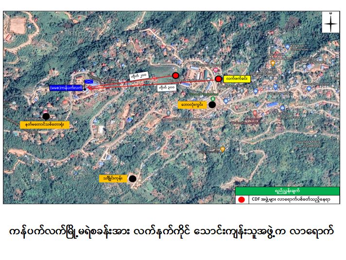 အလားတူ ည ၉ နာရီ ၅၀ မိနစ်အချိန်တွင် ကန်ပက်လက်မြို့၊ မြို့မ(၂)ရပ်ကွက်ရှိ မြို့မ ရဲစခန်းအား လက်နက်ကိုင်သောင်းကျန်းသူများက ရဲစခန်း၏ အရှေ့ မြောက်ဘက် ကိုက် ၃၀၀ ခန့်အကွာ လက်ဖက်ခင်းဘက်မှလည်းကောင်း၊ ည ၁၁ နာရီ ၁၀ မိနစ်အချိန် ခန့်တွင် ရဲစခန်း၏ အရှေ့မြောက်ဘက် ကိုက် ၂၀၀ ခန့်အကွာမှလည်းကောင်း လက်နက်ငယ်၊ တူမီး သေနတ်များဖြင့် လာရောက်ပစ်ခတ်တိုက်ခိုက်ခဲ့သဖြင့် လုံခြုံရေးတပ်ဖွဲ့ဝင်များမှ ပြန်လည်ခုခံ ပစ်ခတ် ခဲ့ရာ အဆိုပါလက်နက်ကိုင်သောင်းကျန်းသူများမှာ ပြန်လည်ဆုတ်ခွာ သွားခဲ့ပြီး ထိတွေ့ မှုဖြစ်စဉ်များ အတွင်း လုံခြုံရေးတပ်ဖွဲ့ဝင်များ ထိခိုက်ဒဏ်ရာရရှိမှုမရှိကြောင်း သတင်းရ ရှိသည်။