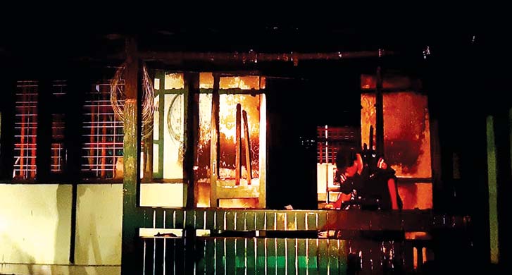 မုံရွာမြို့ အောင်ချမ်းသာရပ်ကွက် အမှတ်(၅) အခြေခံပညာ အထက်တန်းကျောင်းကို အကြမ်းဖက်သူများကမီးရှို့