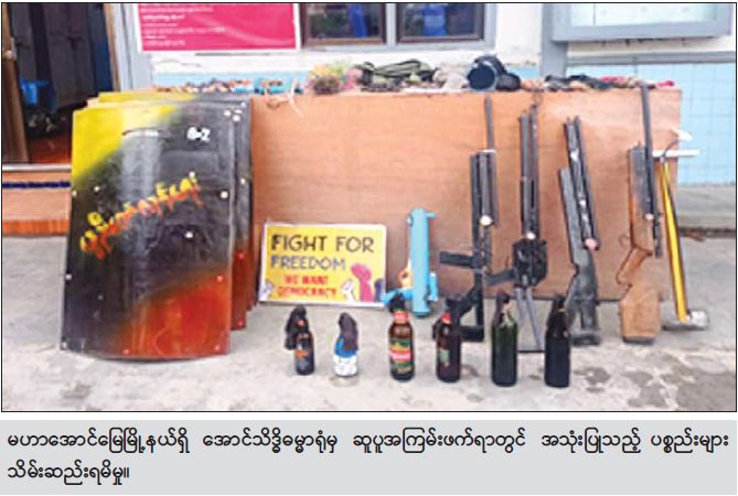 မြို့နယ်အချို့၌ ဆူပူအကြမ်းဖက်မှုလုပ်ရပ်များတွင် အသုံးပြုမည့် လက်နက်၊ ပစ္စည်း၊ ကိရိယာ များအား ဆက်လက်ဖော်ထုတ်သိမ်းဆည်းရမိ