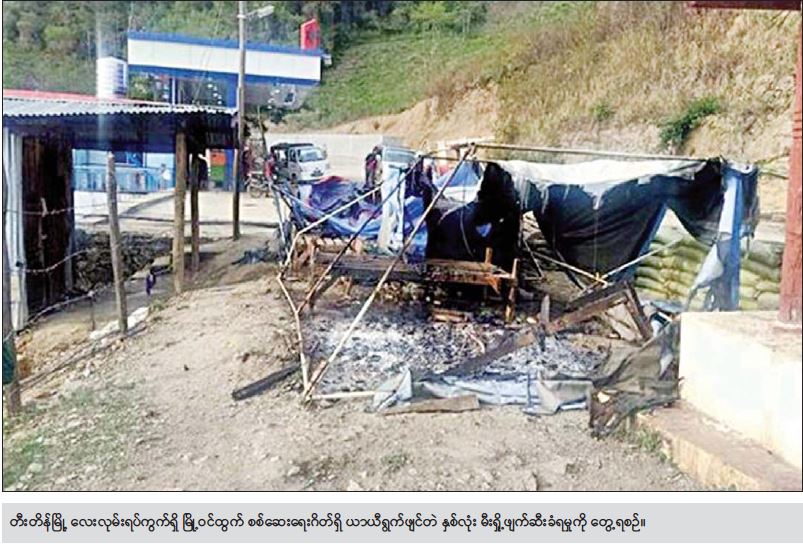 အလားတူ ည ၈ နာရီခွဲအချိန်တွင် ချင်းပြည်နယ်၊ တီးတိန်မြို့၊ လေးလုမ်းရပ်ကွက်ရှိ မြို့ဝင်ထွက် စစ်ဆေးရေးဂိတ်ရှိ ယာယီရွက်ဖျင်တဲ ၂ လုံးအား လက်နက်ကိုင်အကြမ်းဖက်သူများက မီးရှို့ဖျက်ဆီးမှုကြောင့် ရွက်ဖျင်တဲ ၂ လုံးနှင့် သစ်သားကုတင် ၉ လုံးတို့မှာ မီးလောင်ကျွမ်း ပျက်စီးခဲ့သည်။