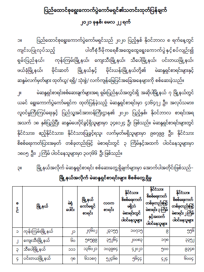 ပြည်ထောင်စုရွေးကောက်ပွဲကော်မရှင်၏သတင်းထုတ်ပြန်ချက် ၂၀၂၁ ခုနှစ်၊ မေလ ၂၂ ရက်