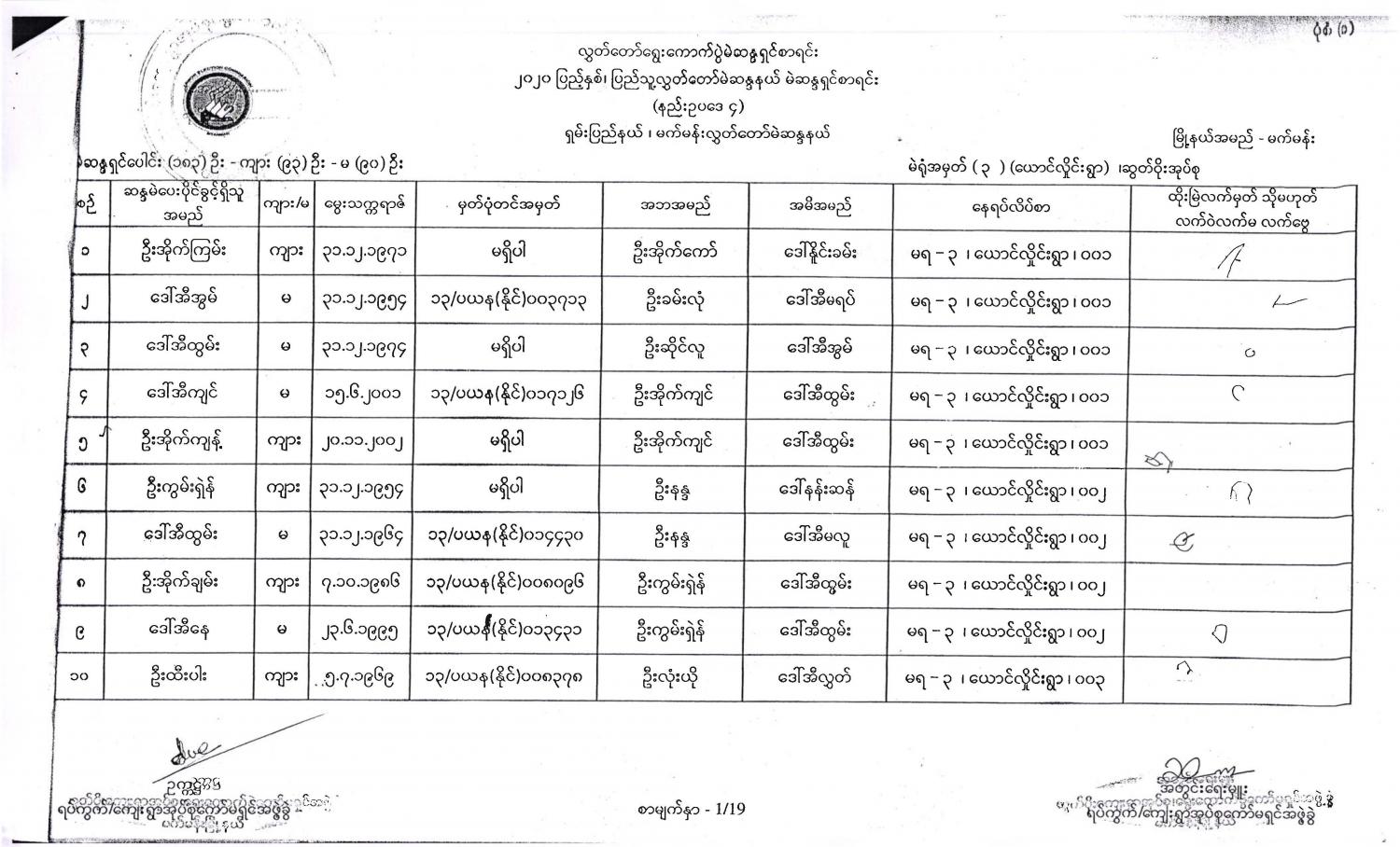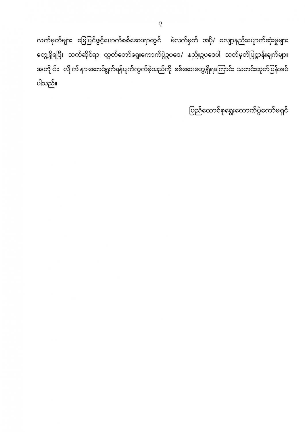ဝန်ကြီးဌာန ကြေညာချက်များ