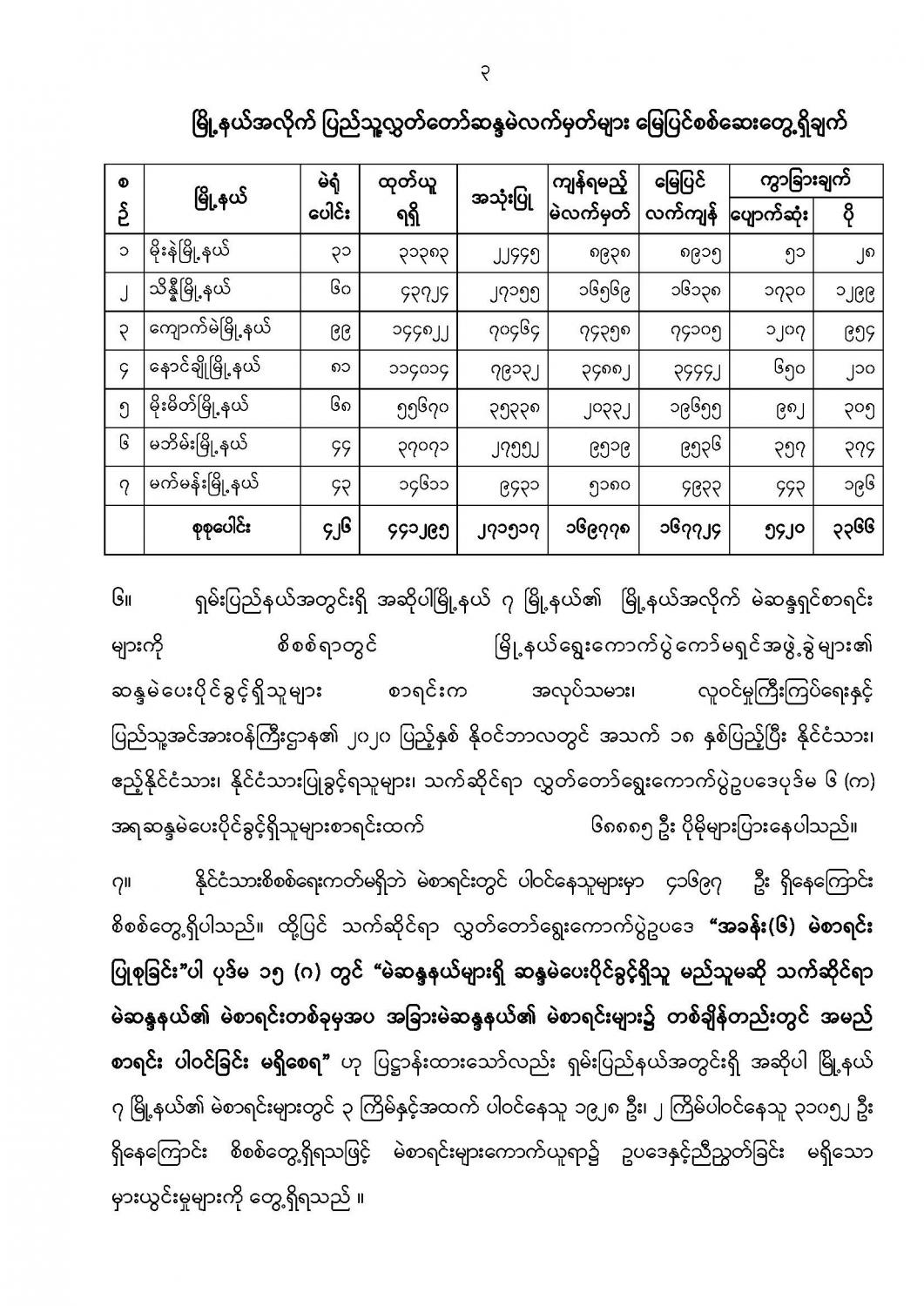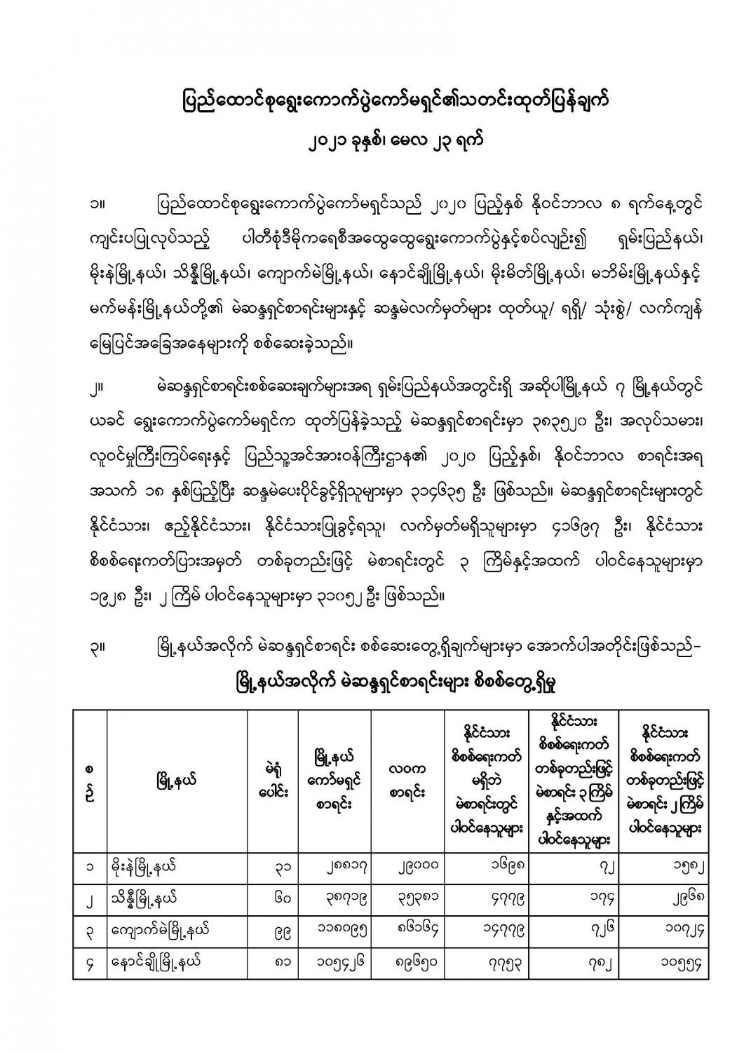 ပြည်ထောင်စုရွေးကောက်ပွဲကော်မရှင်၏သတင်းထုတ်ပြန်ချက် ၂၀၂၁ ခုနှစ်၊ မေလ ၂၃ ရက်