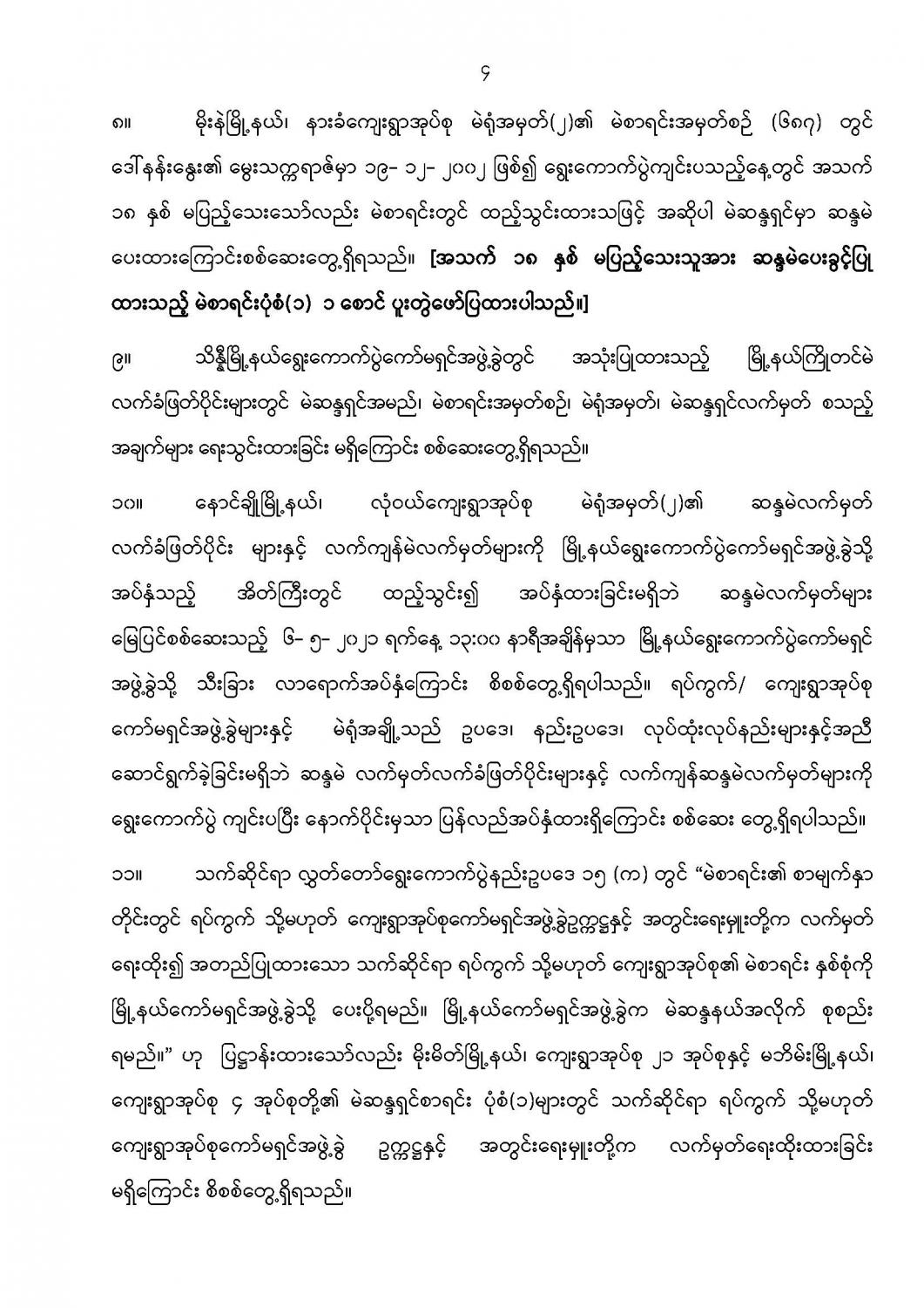 နိုင်ငံတော်အစိုးရ၏ ကြေညာချက်များ