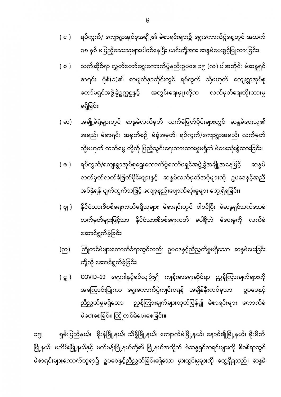 ဦးစီးဌာနနှင့် လုပ်ငန်းများ၏ ကြေညာချက်များ