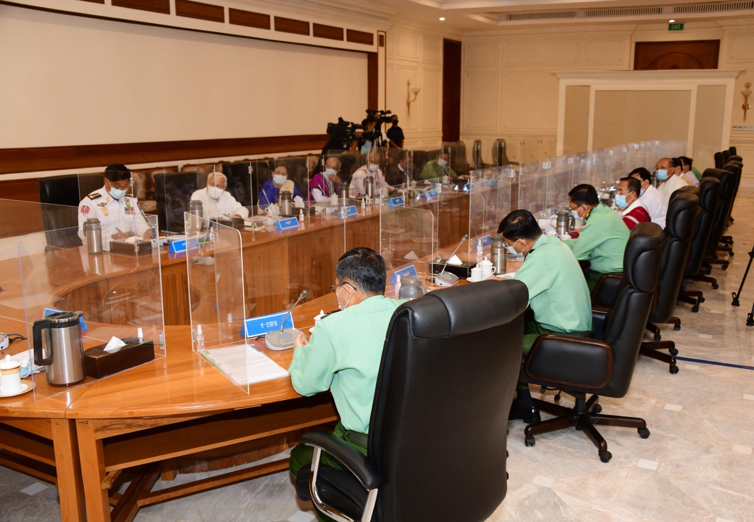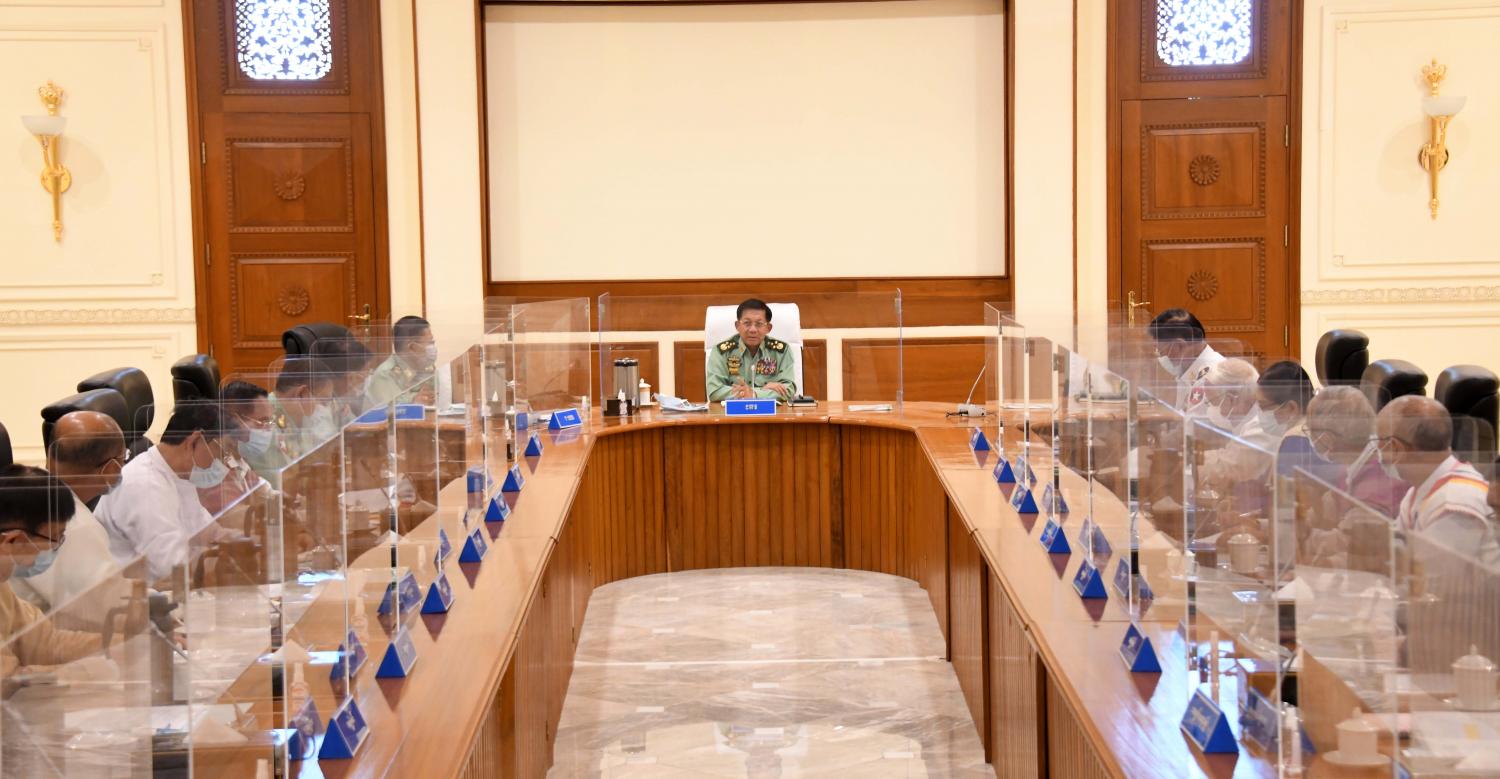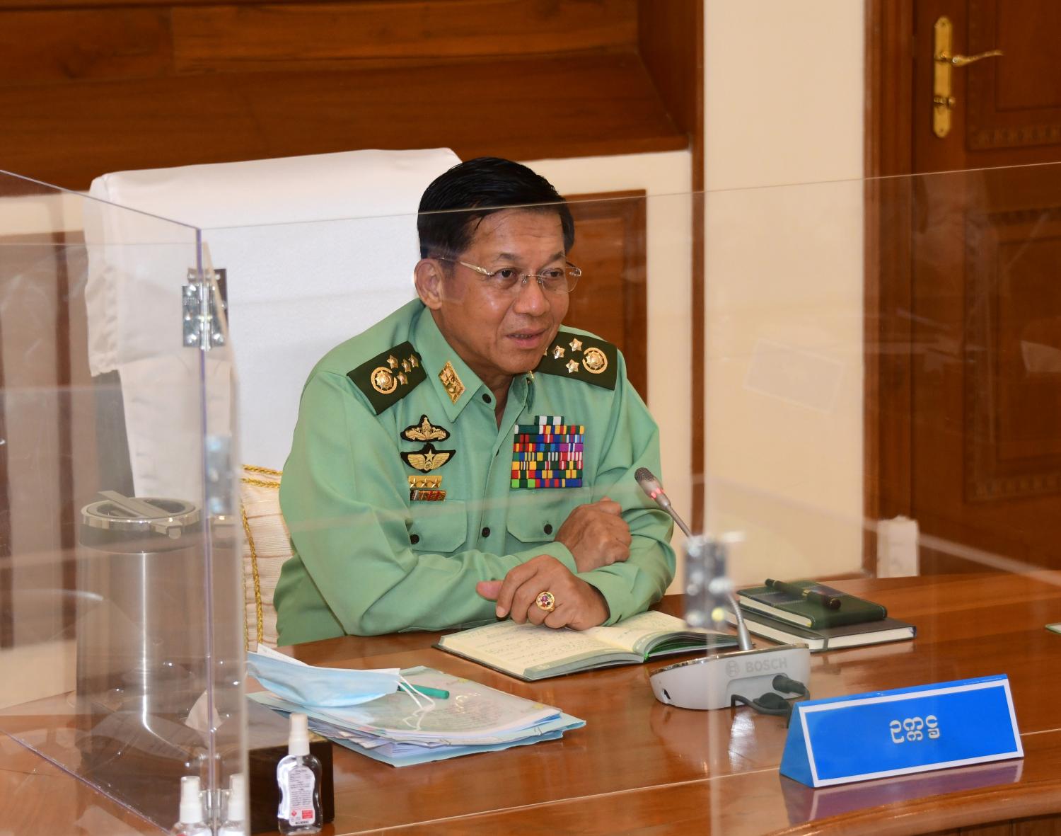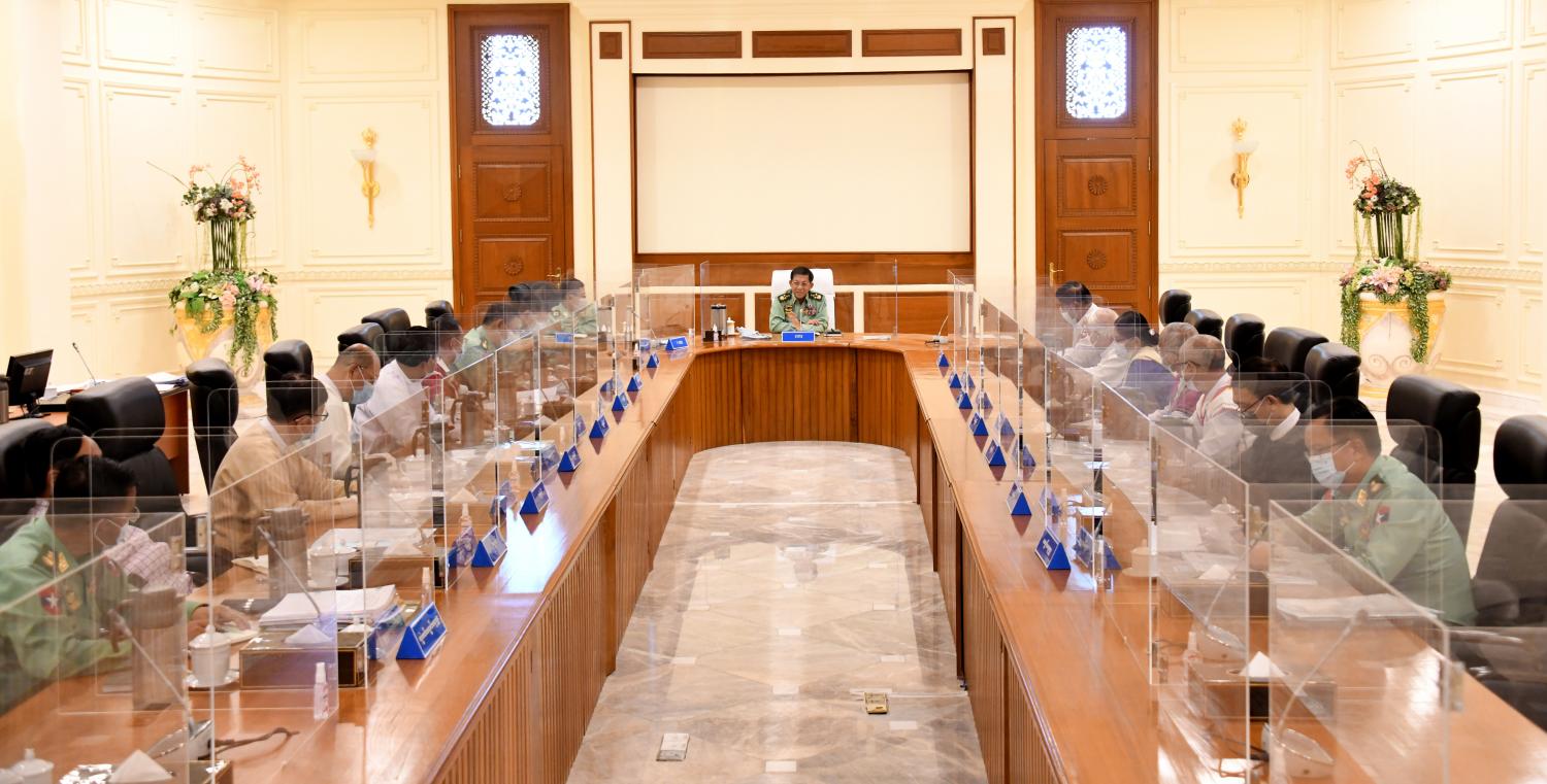 နိုင်ငံတော်စီမံအုပ်ချုပ်ရေး ကောင်စီအစည်းအဝေး (၁၁/၂၀၂၁) ကို ယနေ့မွန်းလွဲပိုင်းတွင် နေပြည်တော်ရှိ နိုင်ငံတော်စီမံအုပ်ချုပ်ရေးကောင်စီဥက္ကဋ္ဌရုံး အစည်းအဝေးခန်းမ၌ ကျင်းပရာ နိုင်ငံတော်စီမံအုပ်ချုပ်ရေးကောင်စီဥက္ကဋ္ဌ၊ တပ်မတော်ကာကွယ်ရေးဦးစီးချုပ် ဗိုလ်ချုပ်မှူးကြီး မင်းအောင်လှိုင် တက်ရောက်အမှာစကား ပြောကြားသည်။