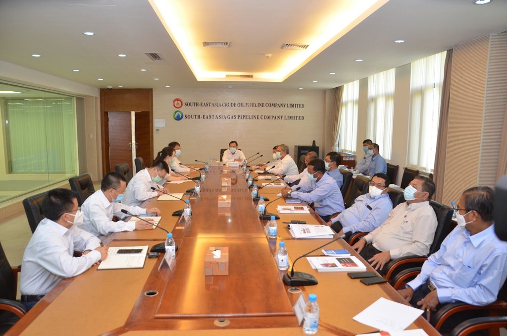 ရှေးဦးစွာ စီမံကိန်းတာဝန်ရှိသူများက ရေနံနှင့်သဘာဝ ဓာတ်ငွေ့ပိုက်လိုင်း ပင်မထိန်း ချုပ်ရေးစခန်း၏ လုပ်ငန်းဆောင်ရွက်နေမှုများကို ရှင်းလင်းတင်ပြကြပြီး မြန်မာ့ရေနံနှင့် သဘာဝ ဓာတ်ငွေ့လုပ်ငန်း ဦးဆောင်ညွှန်ကြားရေးမှူး ဦးဉာဏ်ထွန်းက ဖြည့်စွက်ရှင်းလင်း တင်ပြသည်။